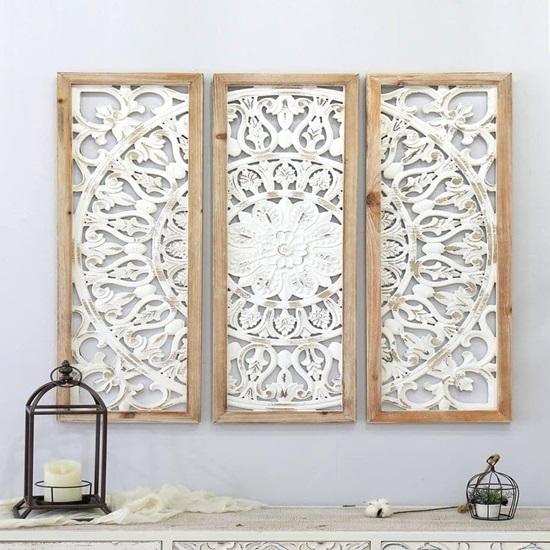 Набор из 3 штук настенных деревянных панелей – Резное декоративное настенное искусство ручной работы (91,44 см)