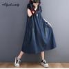 Корейский стиль, летний женский джинсовый сарафан, подтяжки, повседневное свободное свободное платье без рукавов большого размера, винтажное стильное платье миди с карманами