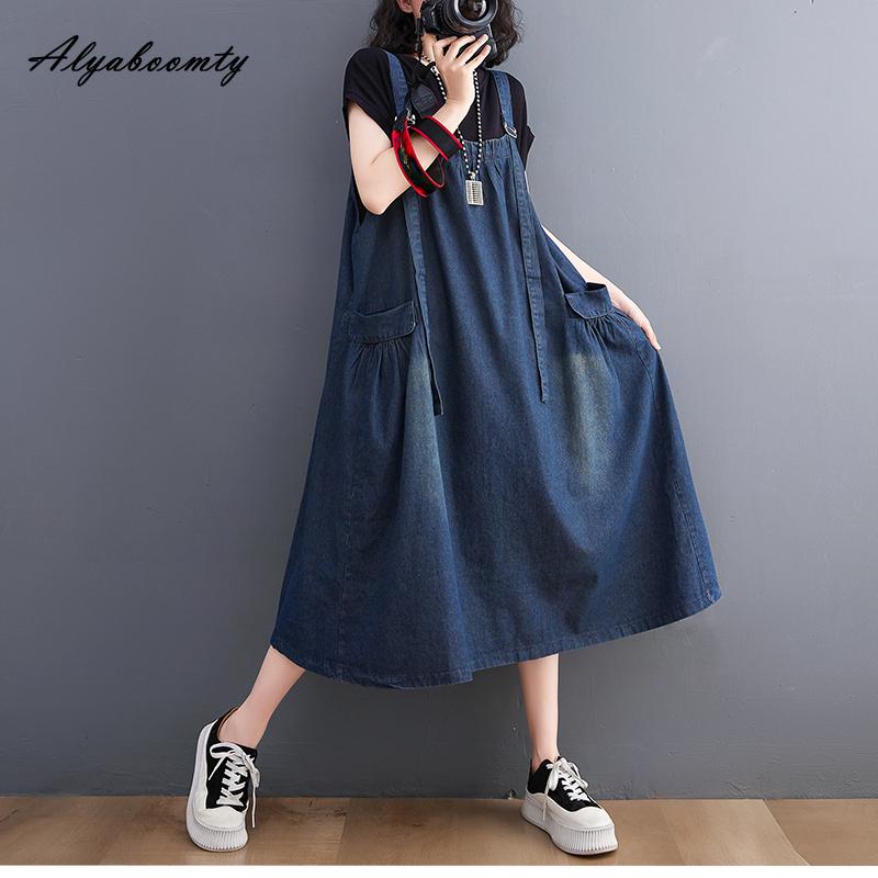 Корейский стиль, летний женский джинсовый сарафан, подтяжки, повседневное свободное свободное платье без рукавов большого размера, винтажное стильное платье миди с карманами — купить товар онлайн с бесплатной доставкой по всему миру!