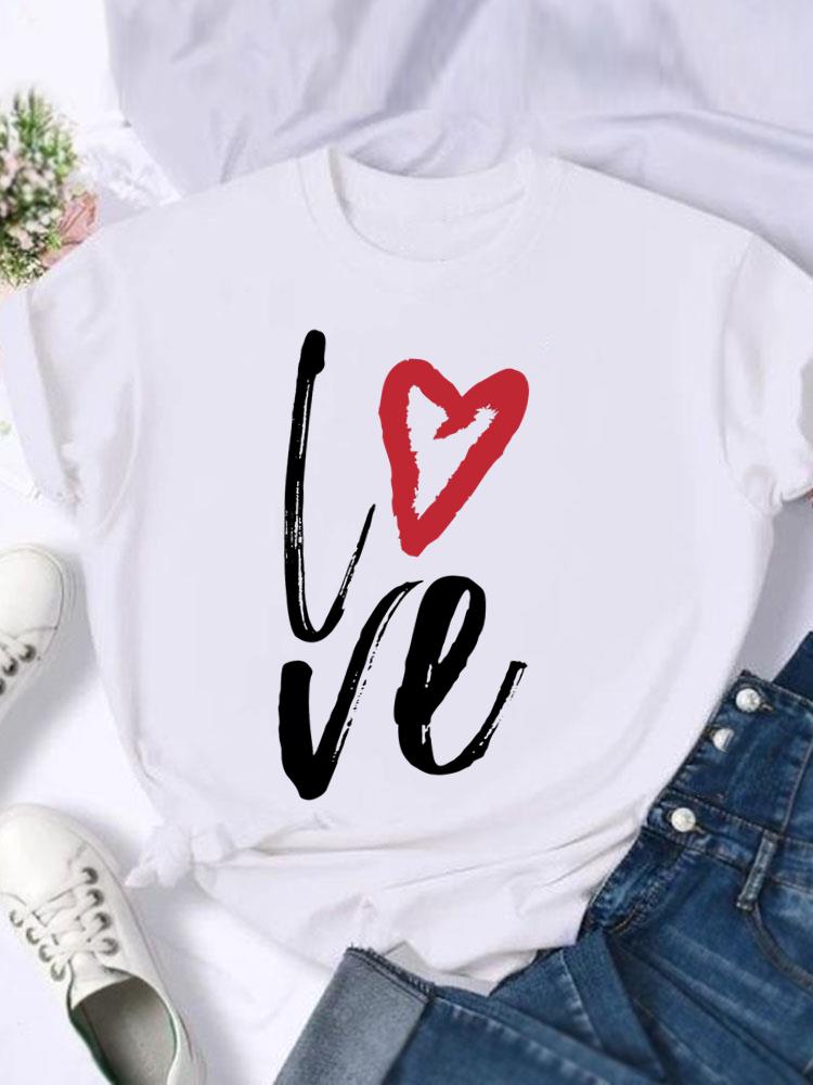 (Азиатский размер) Женский топ T Love Heart Trend Симпатичная одежда 90-х годов Повседневная модная женская футболка с принтом Повседневная футболка с коротким рукавом