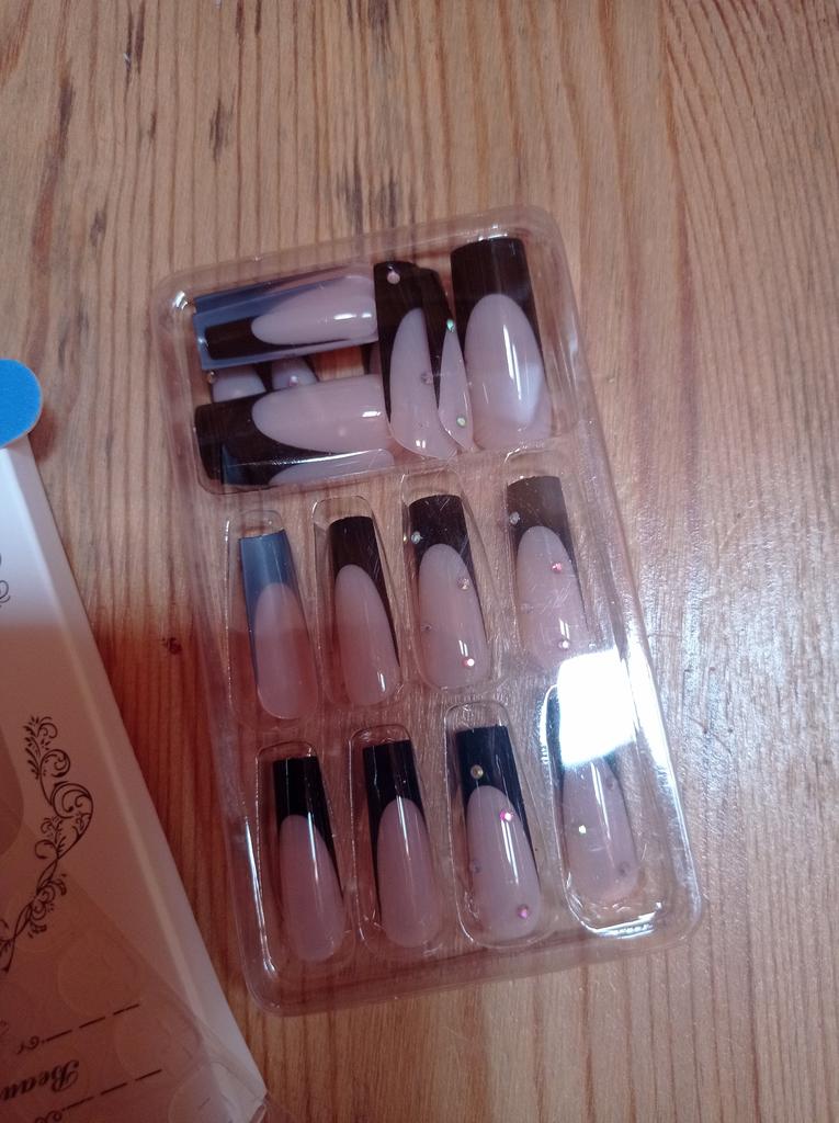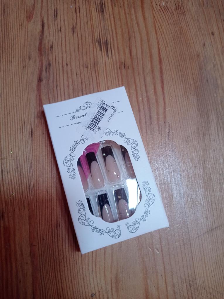 Накладные ногти В упаковке 24 шт. Сами ноготки для меня достаточно длинные, поэтому я легко их укоротила. В комплекте идут: 🔸 тейпы для наклеивания ногтей, 🔸 Пилочка Применение: Обезжирьте поверхность, наклейте тейп (двусторонний скотч) соответствующего размера на внутреннюю сторону ноготкам затем снимите пленку со внутренней стороны скотча и приложите к основанию ногтя, легка отодвигая кутикулу. Только сильно не отодвигайте, иначе вы можете повредить ногтевую пластину. А вообще, мне очень понравилось. Настроение поднимает. Экспресс вариант. Доставлены в почтовое отделение за месяц живым треком в сборной посылке. Товар и продавца рекомендую.