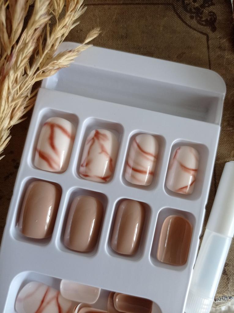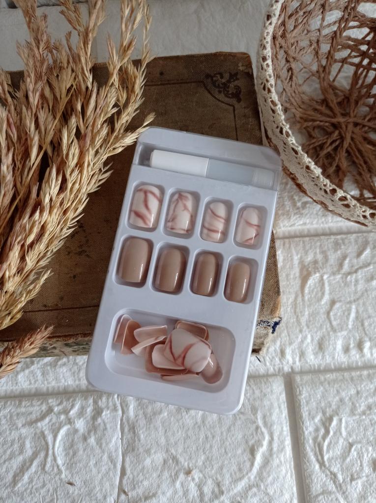 Накладные ногти В упаковке 24 шт. Сами ноготки недлинные, как я люблю. В комплекте идёт клей для ногтей. Применение: Обезжирьте поверхность ногтей, нанесите небольшое количество клея и быстро приложите ноготок соответствующего размера к основанию ногтя, легка отодвигая кутикулу. Только сильно не отодвигайте, иначе вы можете повредить ногтевую пластину. Мне нравится иногда носить такие ноготки. Экспресс вариант. Доставлены в почтовое отделение за месяц живым треком в сборной посылке. Товар и продавца рекомендую.