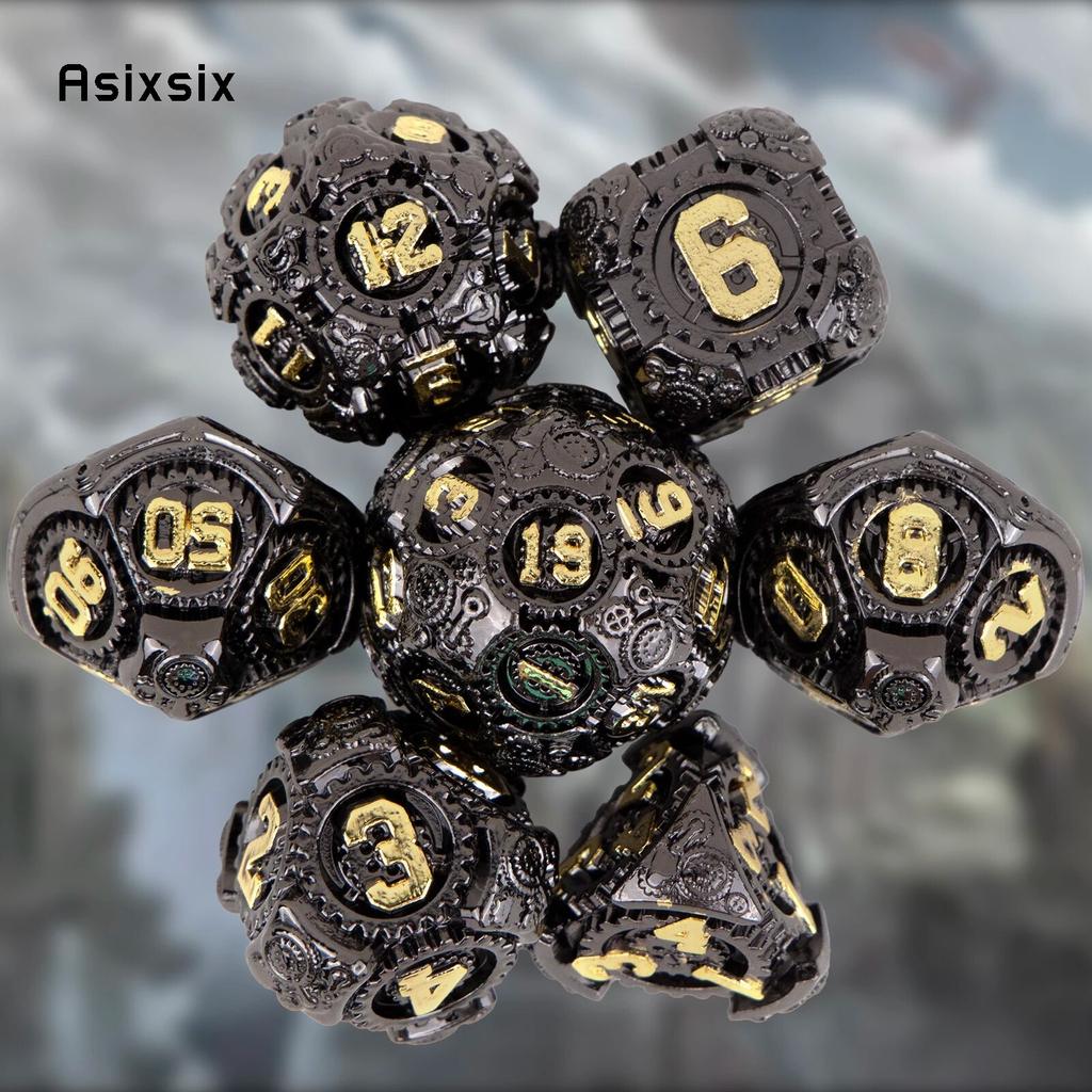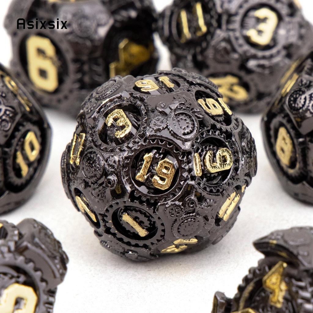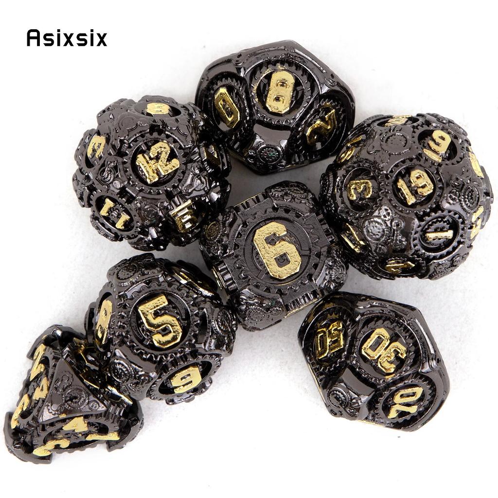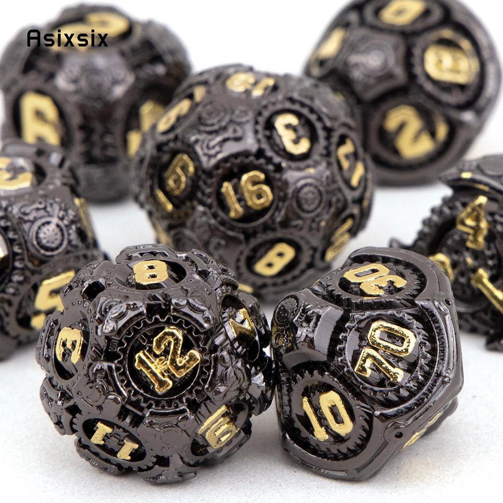 7 шт., черные шестерни, металлические кубики, набор твердых металлических многогранных кубиков, подходящий для ролевой игры, настольной игры, карточной игры