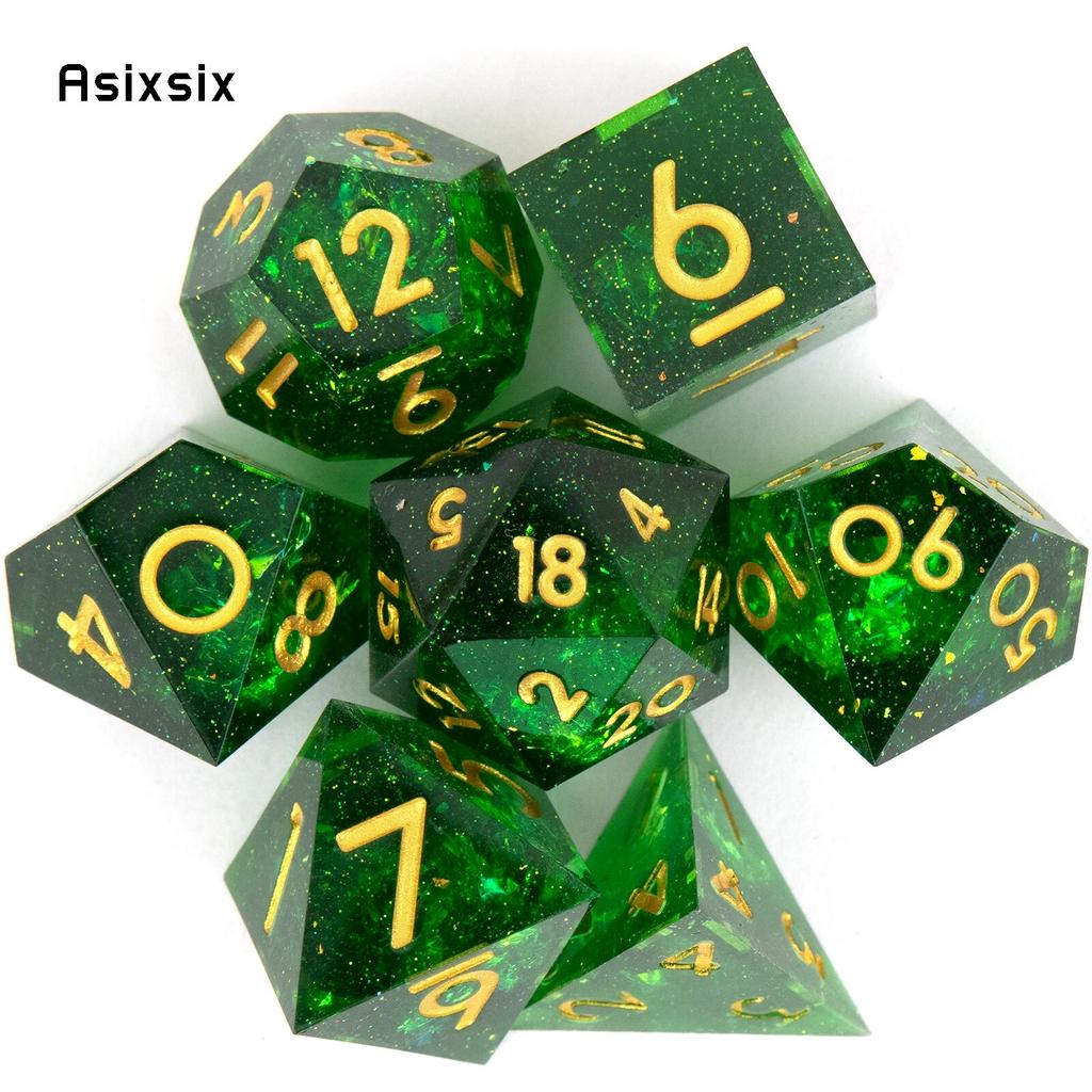 7 шт. зеленый золотой номер с острыми краями, смоляные кубики, многогранные кубики, подходящие для ролевых ролевых игр, настольная игра
