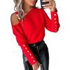 Твердый большой размер, один цвет, рубашка с цепочкой на плечах, декор с длинными рукавами и пуговицами, пуловер с наклонным вырезом, мягкий