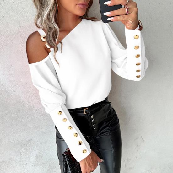 Твердый большой размер, один цвет, рубашка с цепочкой на плечах, декор с длинными рукавами и пуговицами, пуловер с наклонным вырезом, мягкий — купить товар онлайн с бесплатной доставкой по всему миру!