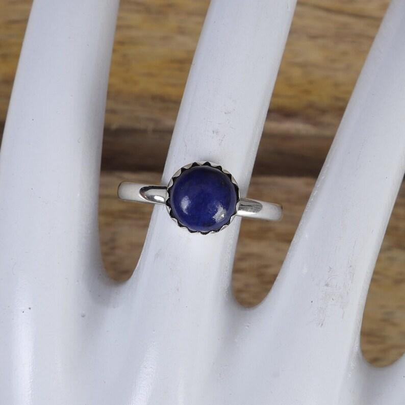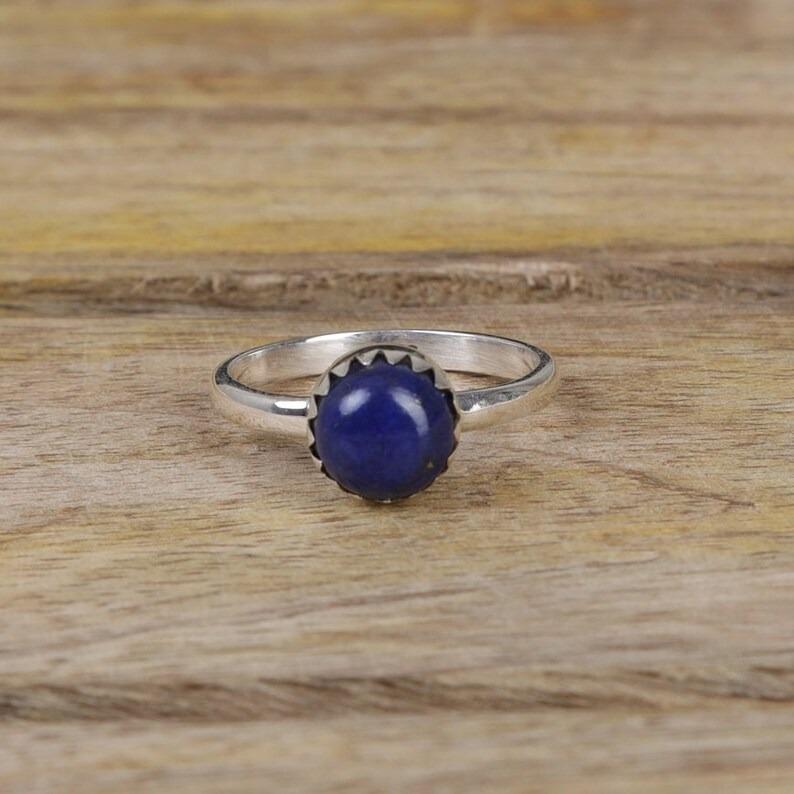 Дизайнерское кольцо ручной работы с круглым драгоценным камнем из лазурита, эффектное кольцо, серебро 925 пробы, подарки на день рождения, кольцо в стиле бохо
