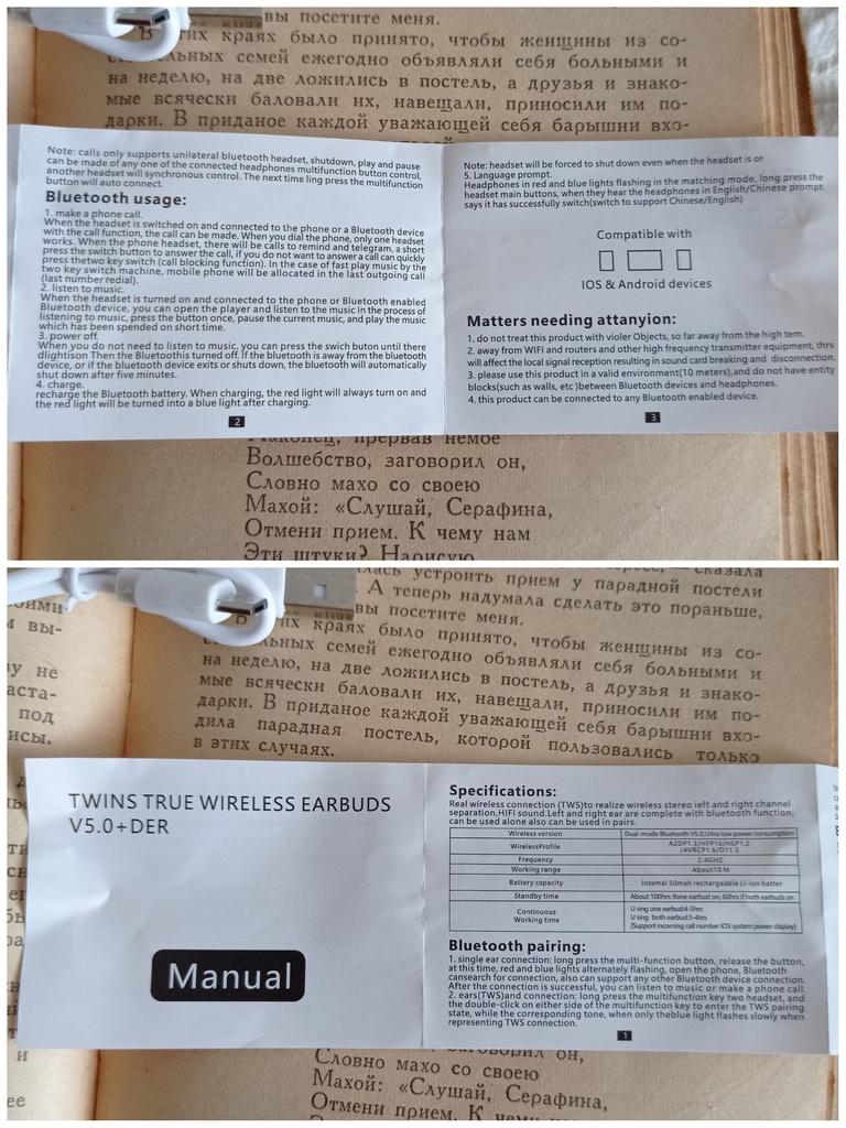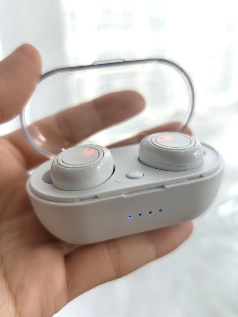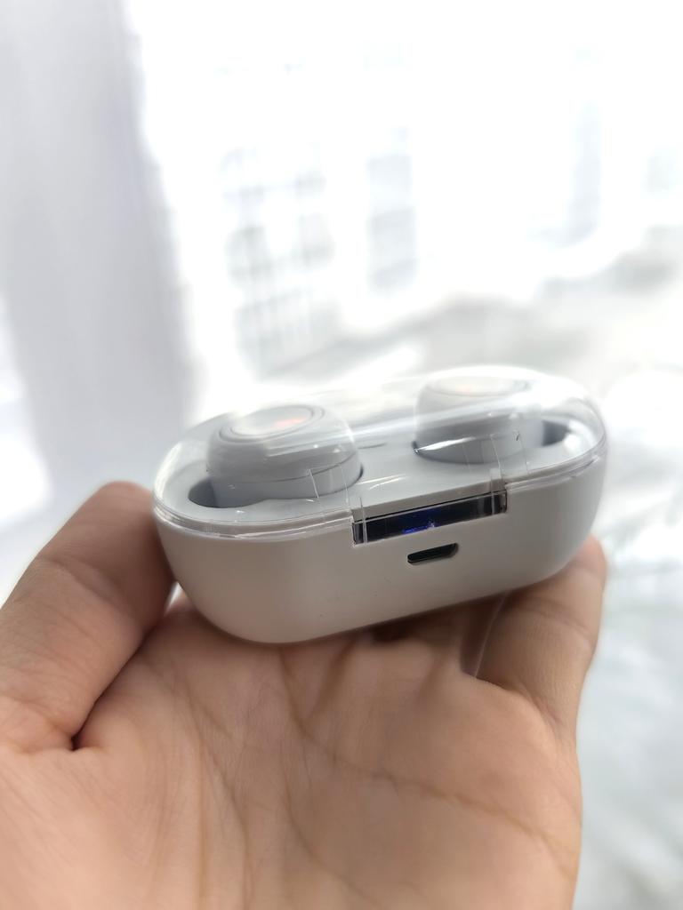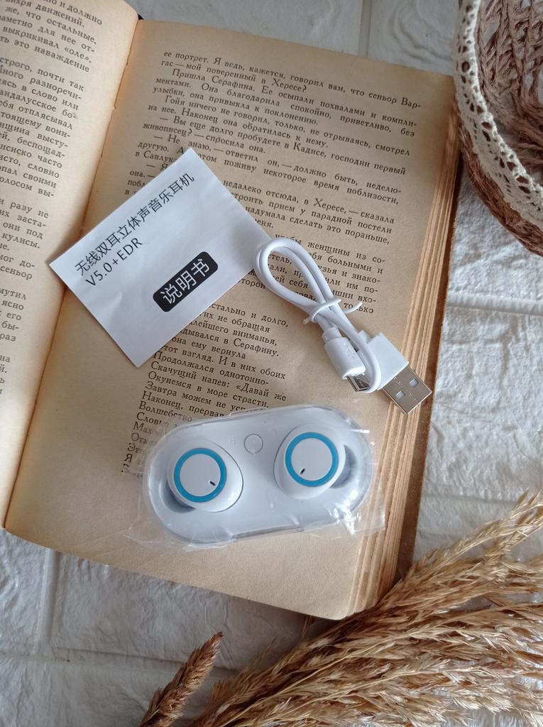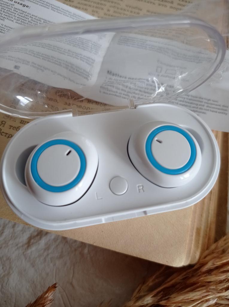 Беспроводные наушники 👌🏻 Понравился звук. Хороший, чистый. Микрофон тоже хороший, слышимость отличная, без шумов. Отлично коннектятся с Android. Автоматически подключаются к смартфону как только вы их вынимаете из кейса. Сенсорное управление. Заряд держат 2,5 часа беспрерывной работы. Хорошее шумоподавление. В комплекте зарядный кабель micro и инструкция. Для меня наушники немного крупноваты. Я имею ввиду визуально. В ушах сидят неплохо. Размер наушника 1,8*2,4*2,4 см Размер кейса 7*3,7*3 см. Не понравилось то, что кейс сложновато открывается. Можно и ногтик сломать. А так вариант хороший. Могу рекомендовать 🤗