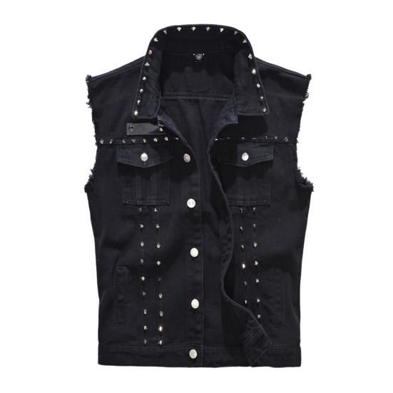 Мужской жилет, однобортный однобортный тонкий жилет с отложным воротником и заклепками без рукавов, уличная одежда