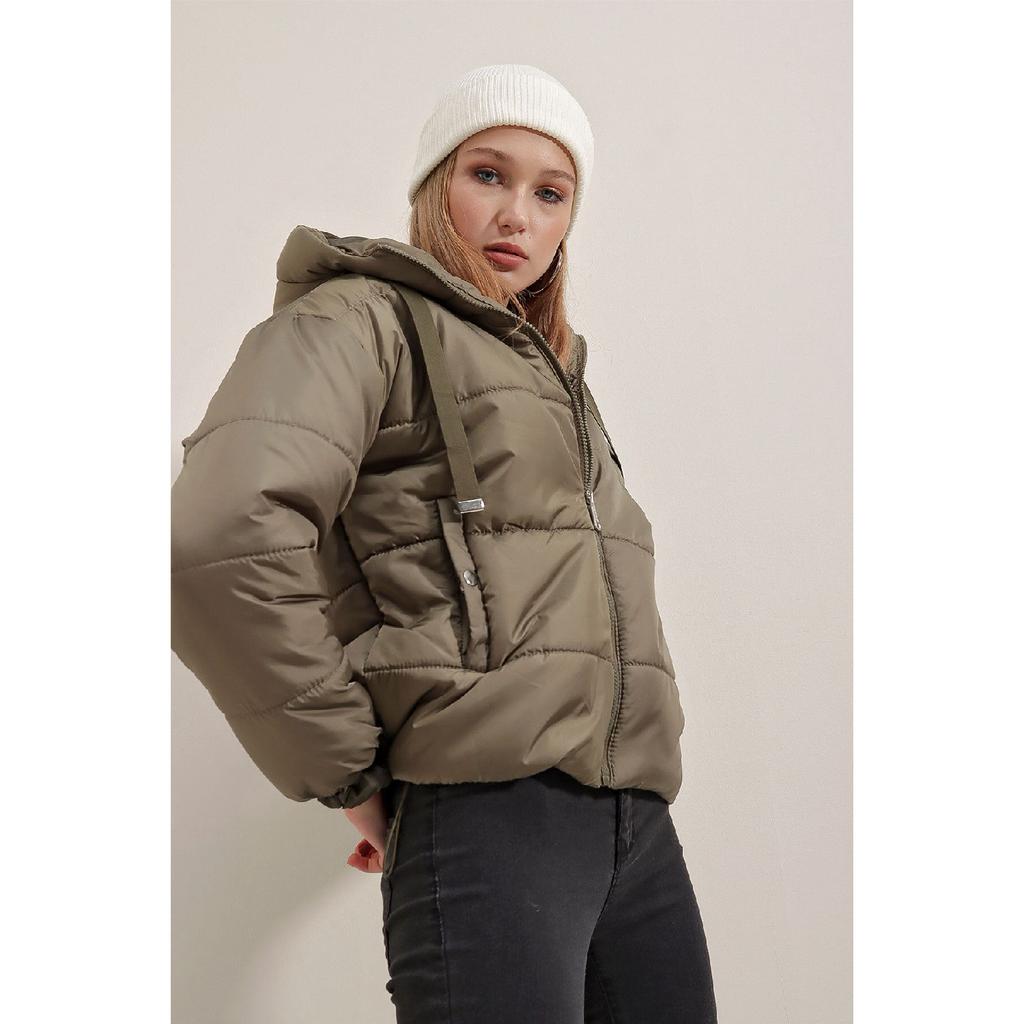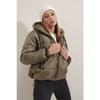 Женский пуховик цвета хаки с капюшоном — купить товар онлайн с бесплатной доставкой до всему миру!