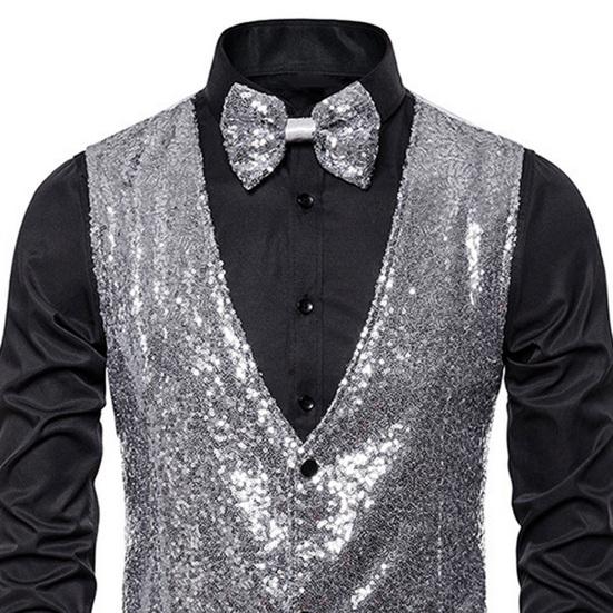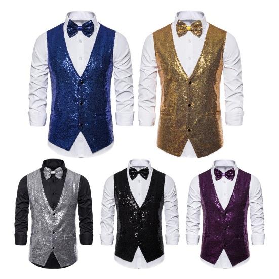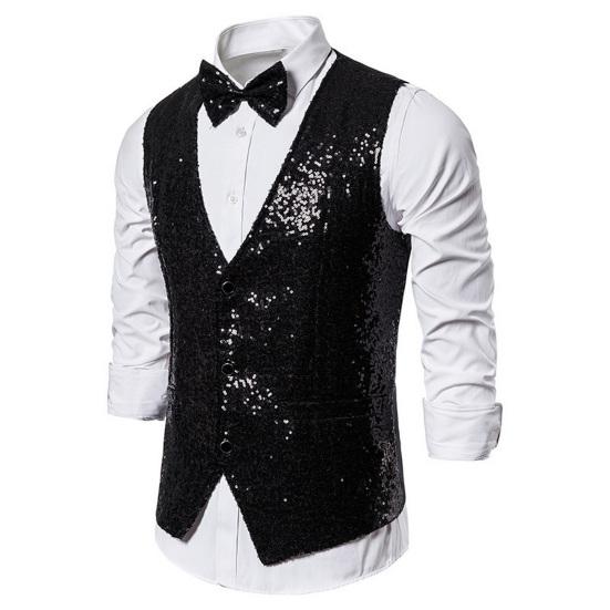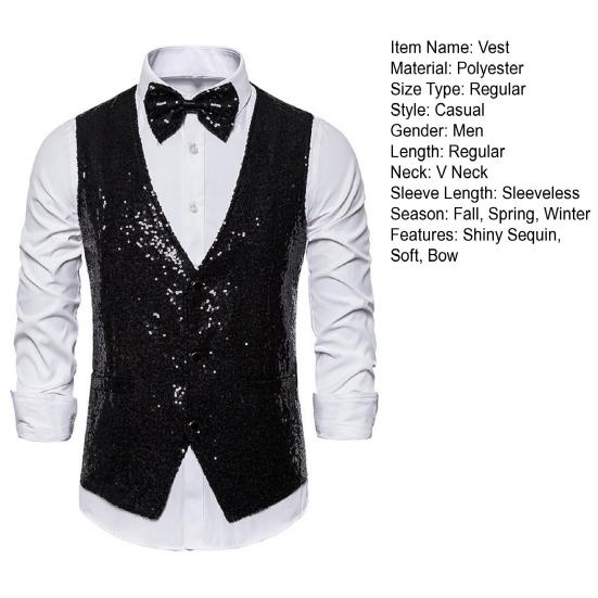 Этот жилет, изготовленный из высококачественного полиэстера, приятен для кожи, мягок, тепл и удобен, что делает его идеальным для повседневного ношения.. Классический однотонный дизайн и дизайн без рукавов с акцентами на завязках с блестками придают ему вневременной и изысканный вид, который никогда не выйдет из моды.. Однобортная застежка на пуговицах позволяет легко надевать и снимать его, а универсальный дизайн позволяет сочетать его с узкими костюмными брюками, повседневными брюками, кожаной обувью и многим другим, создавая простой и модный ансамбль..