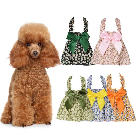 Платье для собаки, удобное мягкое платье с цветочным узором, привлекательный хлопковый повод с бантом, платье для собак, товары для домашних животных