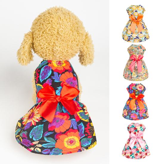 В этом платье для домашних животных есть цветочные принты и банты, красочные и живые, изысканные по качеству изготовления, благодаря чему ваш питомец выглядит модно, элегантно и красиво.