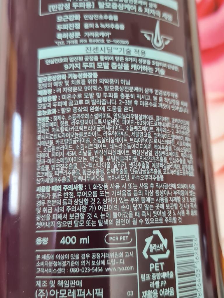 Ryo (тт5) Jayangyunmo 9EX Шампунь для ухода за волосами при выпадении для чувствительной кожи головы 400 мл / (у.е.)