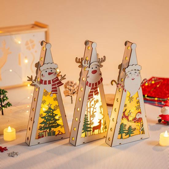 Рождественский деревянный подвесной кулон треугольный светильник Санта-Клаус Снеговик резной полый узор светодиодный светильник деревянное ремесло подарок детям — купить товар онлайн с бесплатной доставкой до всему миру!