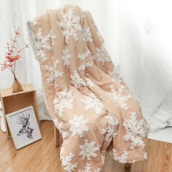 Рождественское одеяло с волосатым принтом снежинок, мягкие утолщенные двойные слои, сохраняющие тепло, контрастные цвета, антипиллинговое диванное одеяло, плохое зимнее одеяло для дома