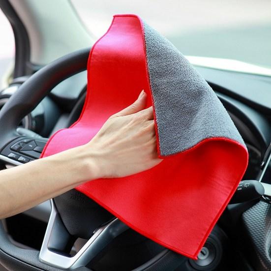 Три размера утолщенное подшиваемое полотенце для мойки автомобиля водопоглощающая двухсторонняя флисовая ткань для чистки