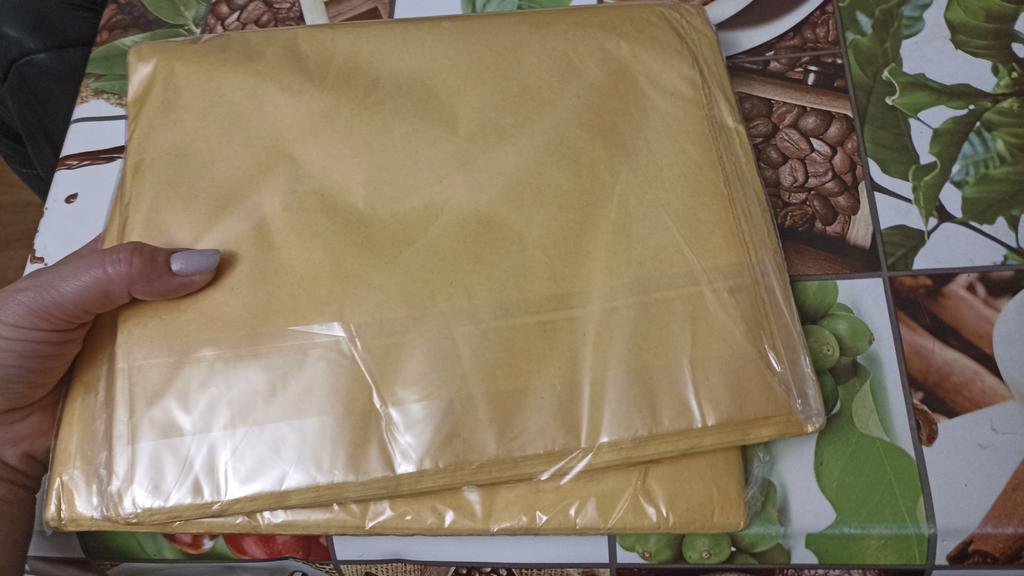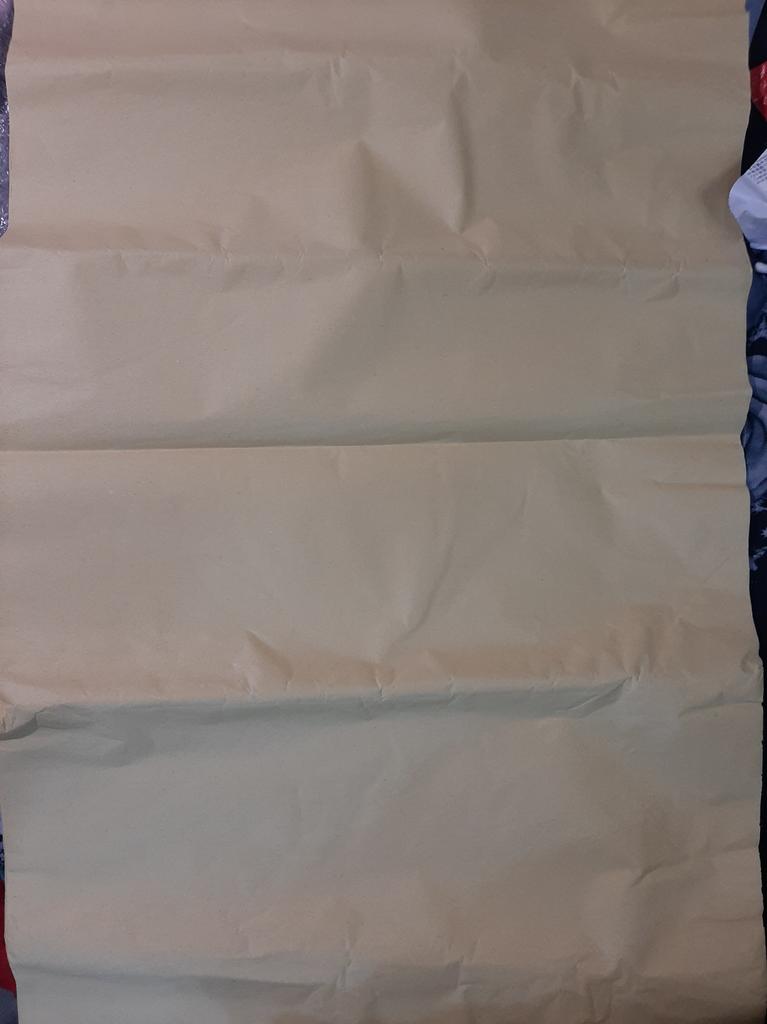 Пришла не сильно мятая, не порвана. Бумага тонкая Цвет темнее, чем я думала, более горчичный На фото камера не передаёт естественный цвет в деле ещё не пробовала