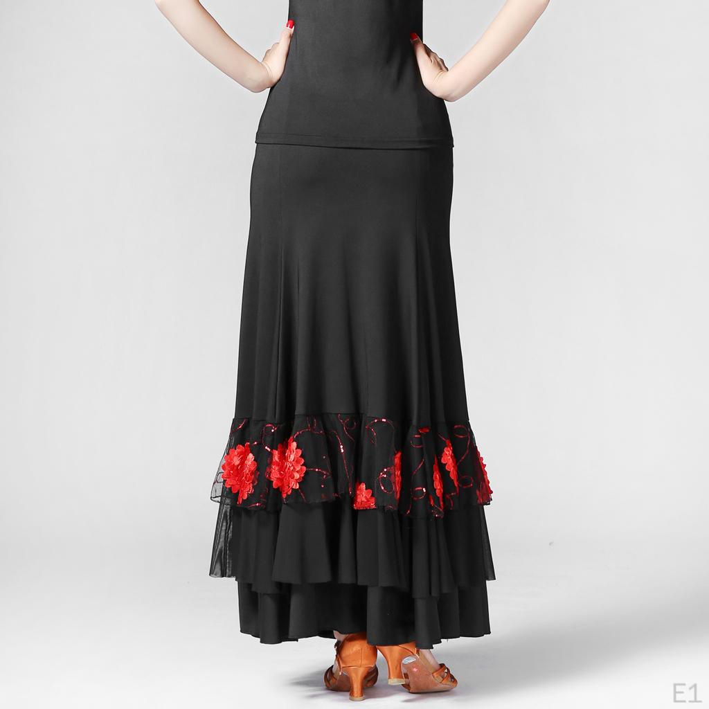 Юбка для танца живота, костюм для бальных танцев, испанское платье фламенко, черный