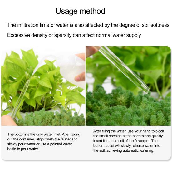 Этот автоматический шарик для полива поможет сэкономить время занятым людям или частым путешественникам.. Он сохраняет ваши растения и цветы влажными, медленно выпуская воду в почву.. Как только система полива насыщается, она перестает течь, поэтому вам больше не придется беспокоиться о том, что вы забудете полить растения.