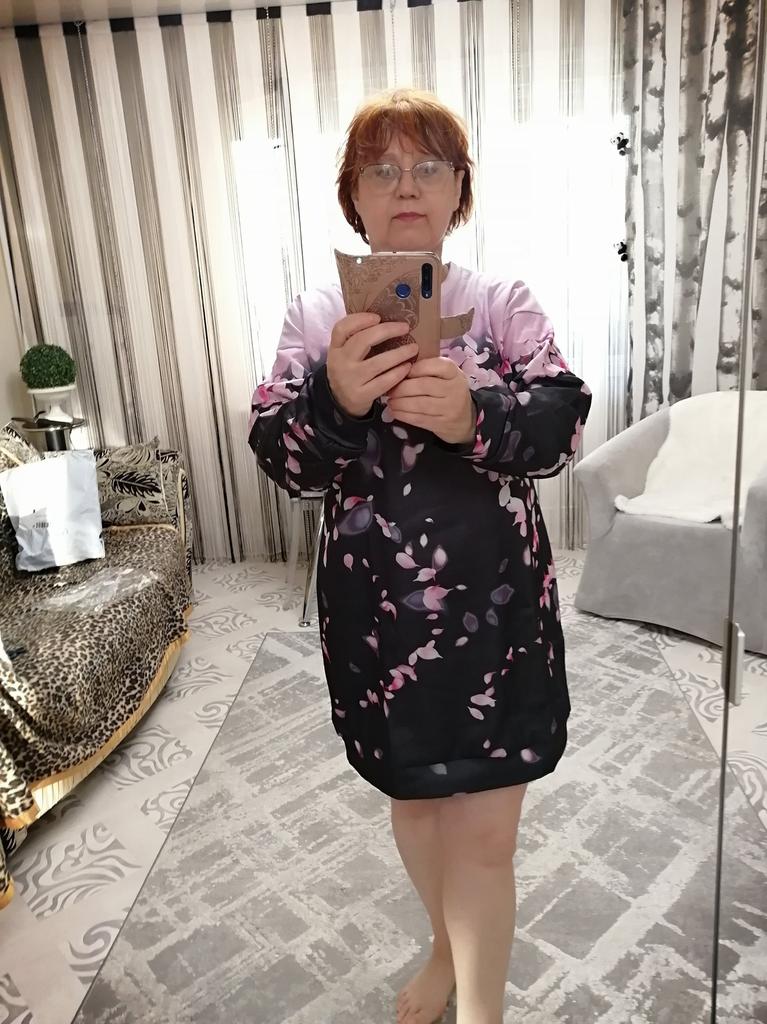 Платье-толстовка хорошее, соответствует описанию. С изнаночной стороны ткань флиз. Тёплое платье. Заказала размер L. Ношу размер 52, ОГ 105 см. У платья ОГ 118 см, это чуть больше, чем заявлено. Но это не страшно. Ведь толстовку покупала на зиму, на холодную погоду. Должна быть свободной. Мой рост 164 см. Длина этой толстовки 90см. Буду носить с узкими брюками или леггинсами.