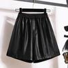 DIMANAF 2024 Большие размеры, осенне-зимние шорты, женские новые трапециевидные черные повседневные свободные широкие брюки из искусственной кожи, короткие брюки