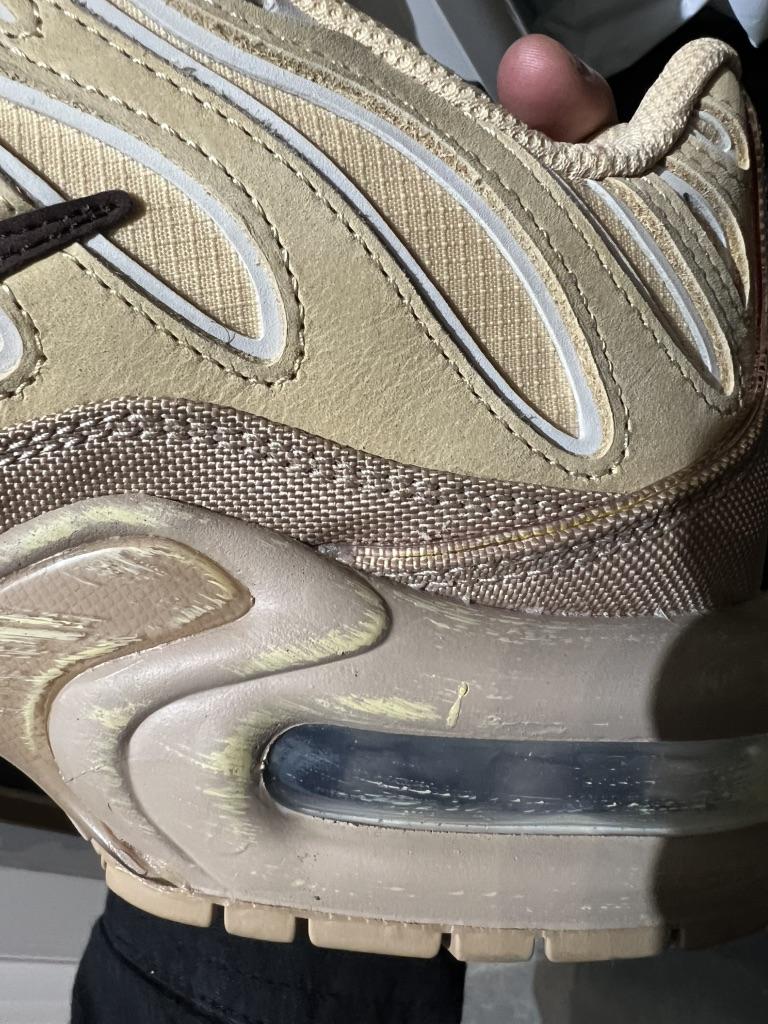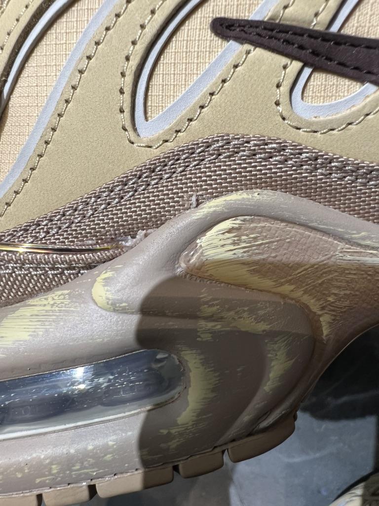 Пришли в конце мая Как многие уже писали, чуть узковаты, есть смысл брать на пол размера больше, eur41 - 26см Размерная сетка продовца не соответствует действительности, ориентируйтесь на размерную сетку найк. На счет оригинальности не хочу утверждать, многие говорят что на ориге всегда есть следы клея, тут не исключение, особенно по бокам в области примыкания цветной полосы, там клей просто кусками. Ну и чуть на носке по разному идет наклейка прорезиненной части Дополнение от 17.10.2025 Оба носка сверху отклеились еще месяца 3 назад, приклеил сам. Ниже кто-то писал о подобном Один ботинок сидит хорошо, как будто был разношен, второй впритык. После 2 месяцев хождения на правом тапке было ощущение что стелька в передней части стопы имеет выпуклость, ощущается бугром на стельке, ощущения после полного дня в них не приятные Балоны в области подошвы начали пропускать воздух и впитывать влагу, на видео видно где именно прошел прорыв. Вот такая шляпа после использования 4-х месяцев при условии что летом в них гонял редко