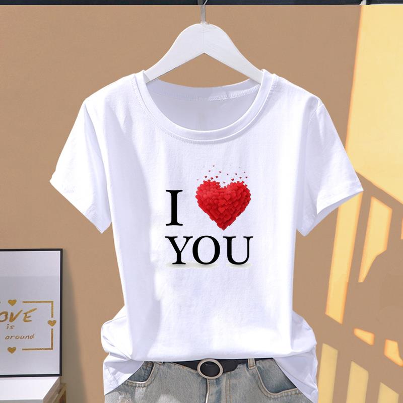 (Азиатский размер) Футболка с графическим принтом, надписью «Любовь и сердце», симпатичная трендовая одежда, женская повседневная модная принтованная женская повседневная футболка с коротким рукавом