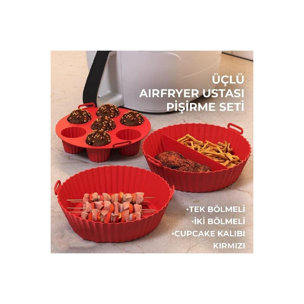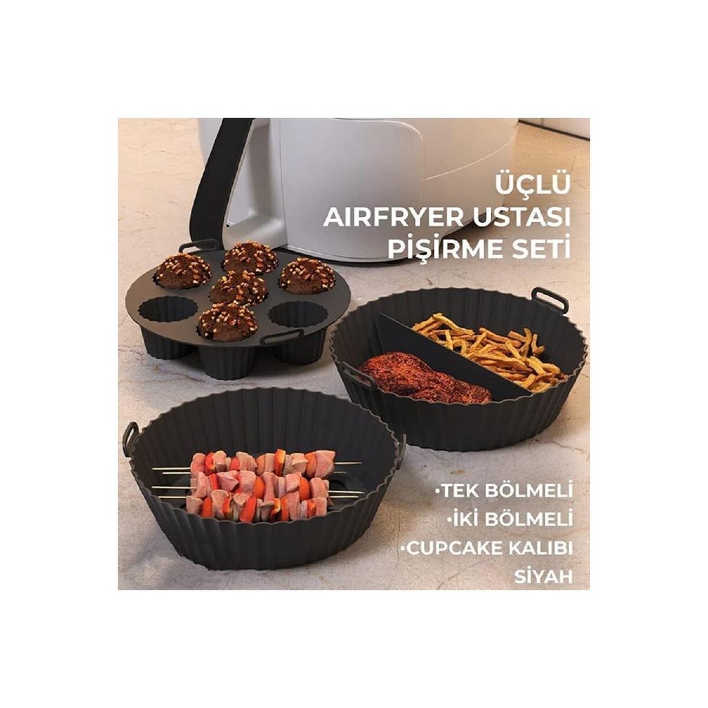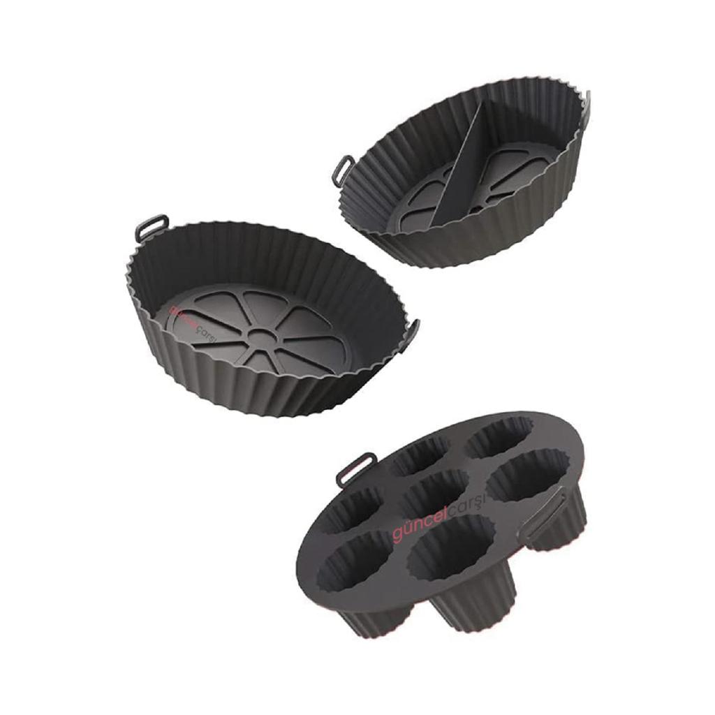 Набор из 3 шт. для аэрогриля, силиконовый контейнер для выпечки в аэрофритюрнице, форма для аксессуаров для бумаги для выпечки, не содержащая BPA, 20x5 см