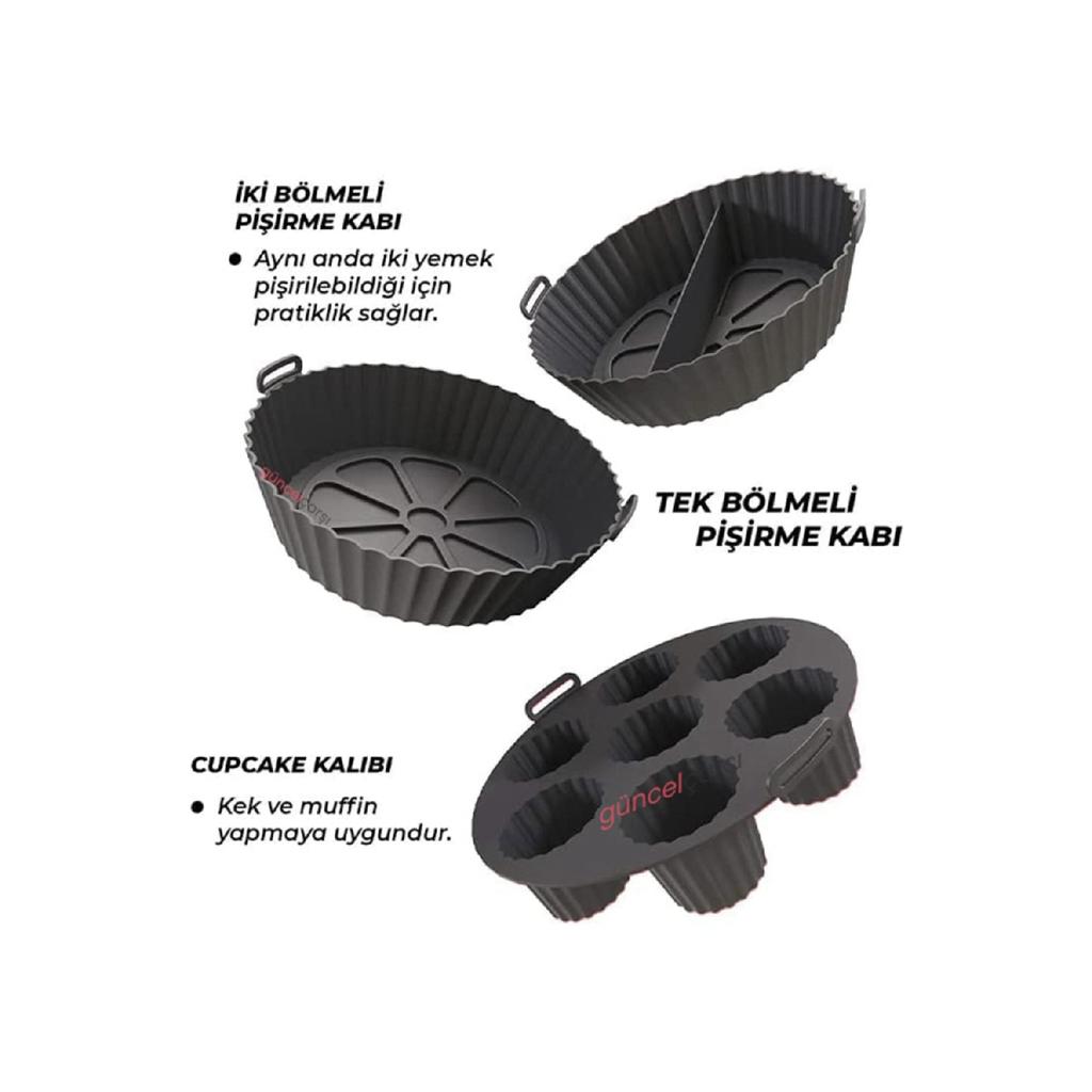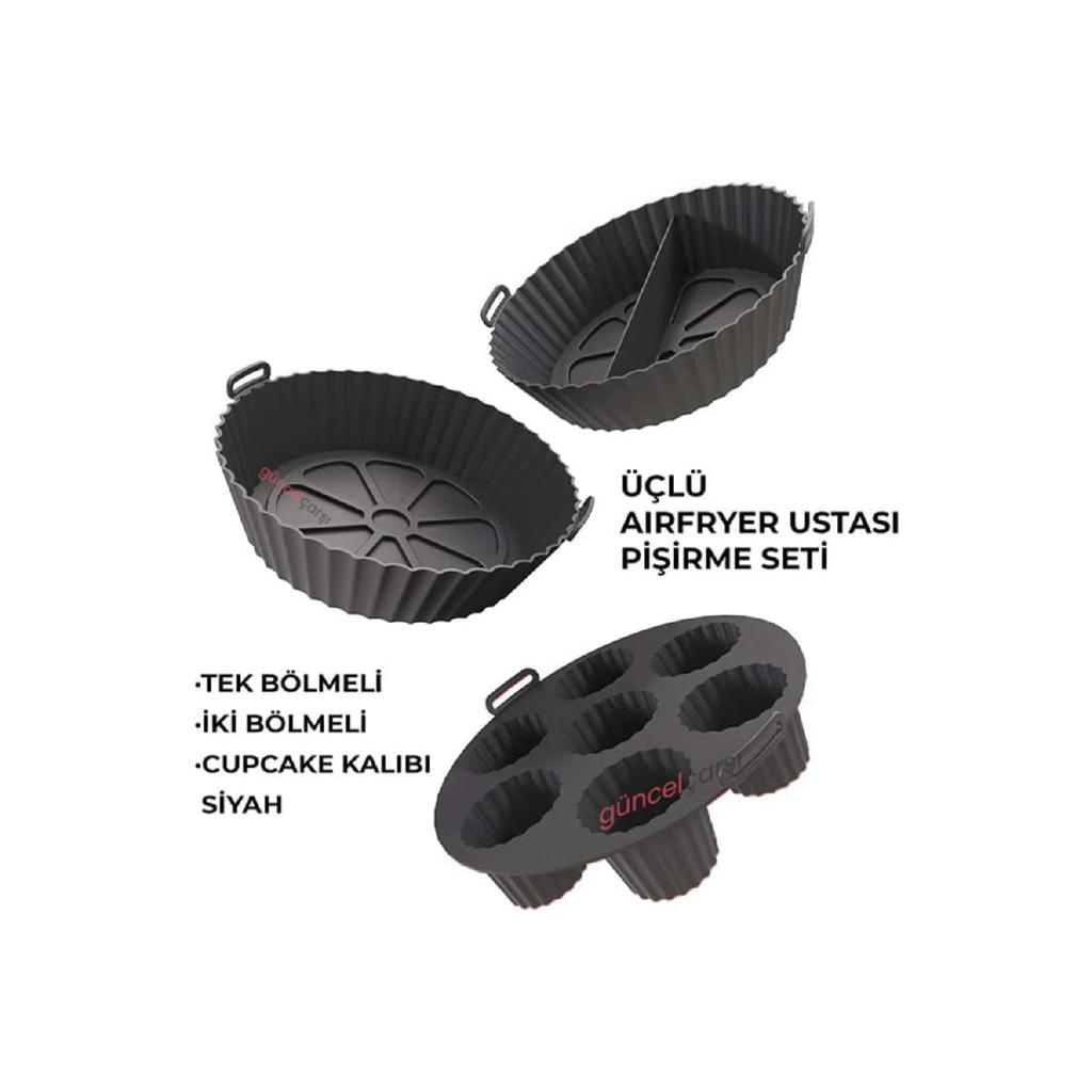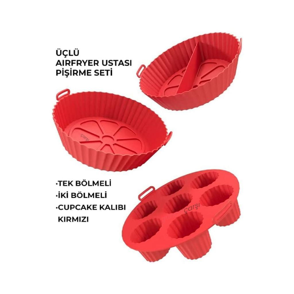 Набор из 3 шт. для аэрогриля, силиконовый контейнер для выпечки в аэрофритюрнице, форма для аксессуаров для бумаги для выпечки, не содержащая BPA, 20x5 см