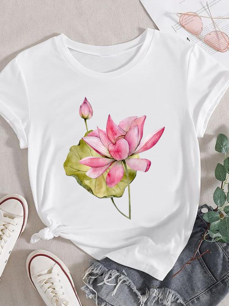 (Азиатский размер) Женская модная футболка с короткими рукавами в стиле 90-х с цветочным трендом, женская повседневная футболка с принтом, женские футболки с графикой