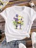 (Азиатский размер) Женская милая цветочная тенденция 90-х годов, модная футболка с коротким рукавом, одежда с принтом, женская повседневная футболка, женские футболки с графикой