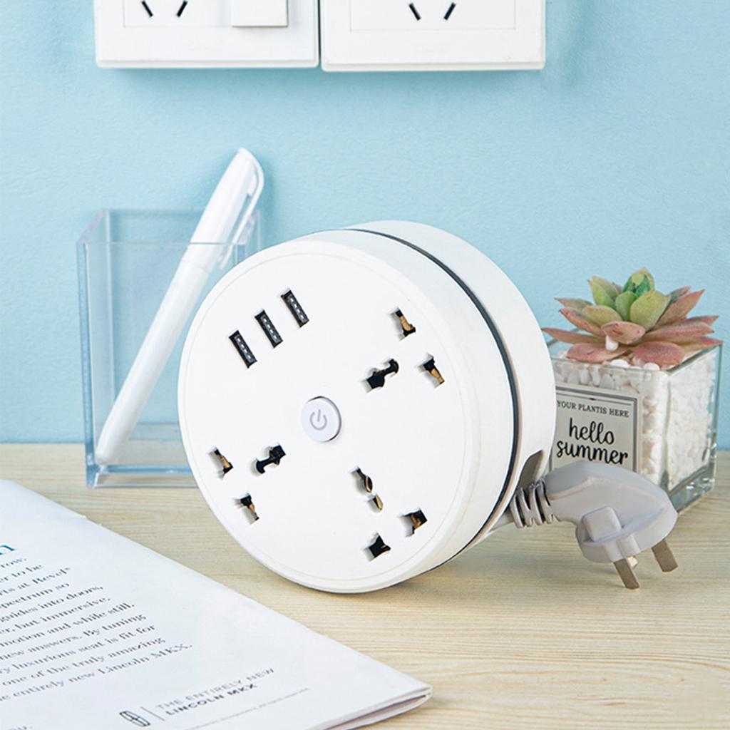 Трехконтактный сетевой фильтр с 3 универсальными розетками переменного тока и 3 портами USB, мощностью 2500 Вт/10 А, розетки переменного тока поддерживают диапазон напряжения 110–250 В, порты USB поддерживают 5 В/2,1 А.