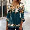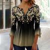 GMXIA Женские модные повседневные свободные футболки и топы с v-образным вырезом и рукавами 3/4 с цветочным принтом