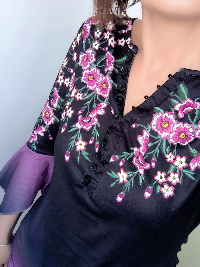Классная летняя блузка 💙 +видео 📹 обзор Смотрится красиво, стильно, расцветка летняя, цветочная. Швы обработаны, качество хорошее. Материал смесовый, хлопок и полиэстер, неплохо тянется, к телу приятный, не электризуется и не просвечивает. На выбор у продавца 6 расцветок, размерный ряд S-5XL, я выбрала XL. Замеры: Длина 72 см. ОГ - 110 см. Плечи - 38 см. Рукав - 52 см. На мой рост 177 см и параметры 103-79-106 см подошла отлично, чуть свободна. К покупке однозначно рекомендую 👍👍👍💯💯💯💯💯 Доставка ✈️ до Минска заняла 5 надель. Спасибо продавцу и джуму 😘 Благодарю вас за ваши лайки,❤ комментарии 💬 и подписку ✅️