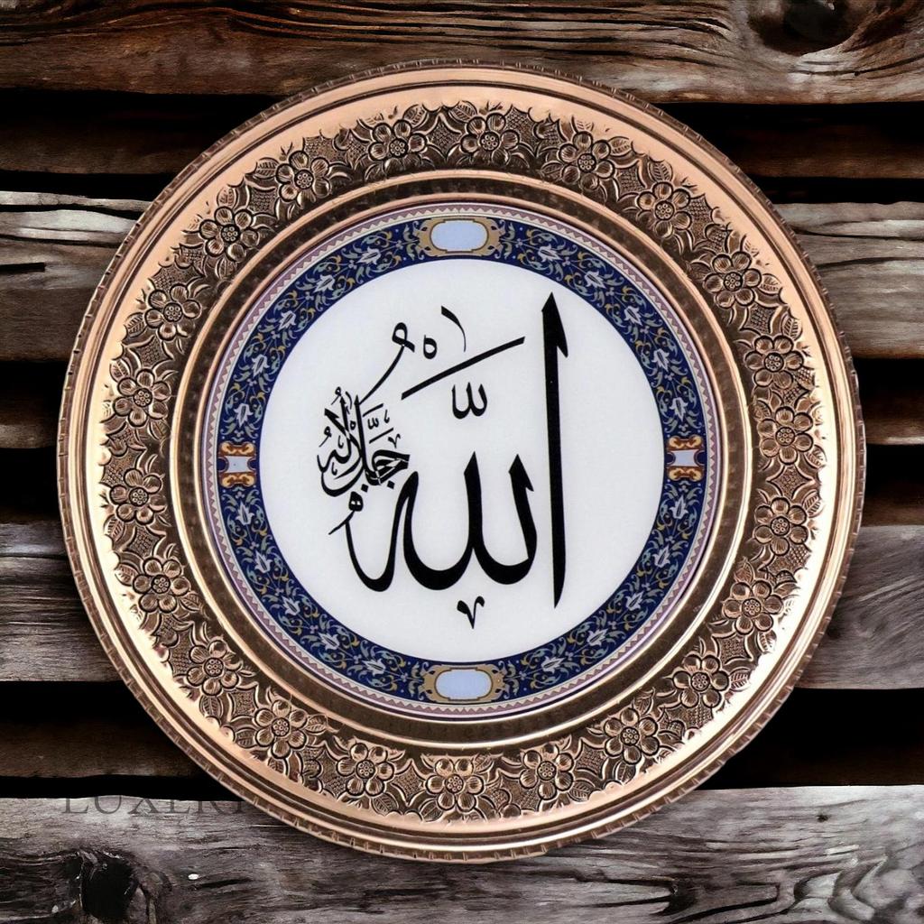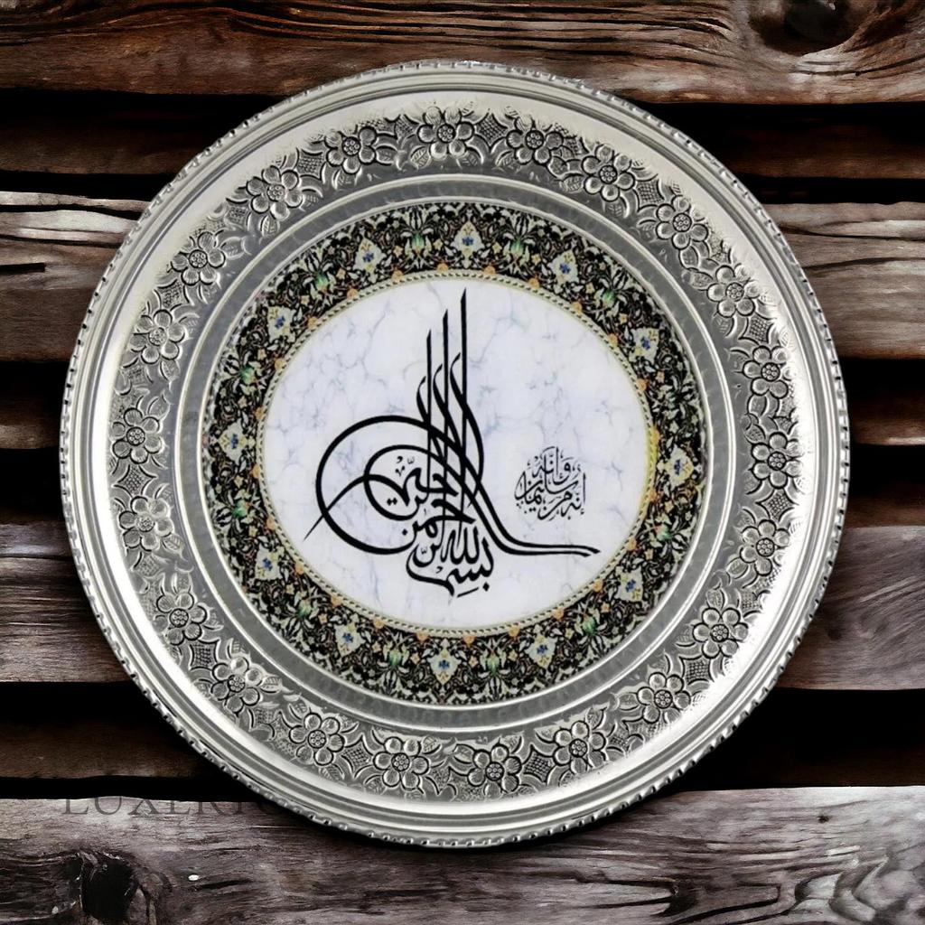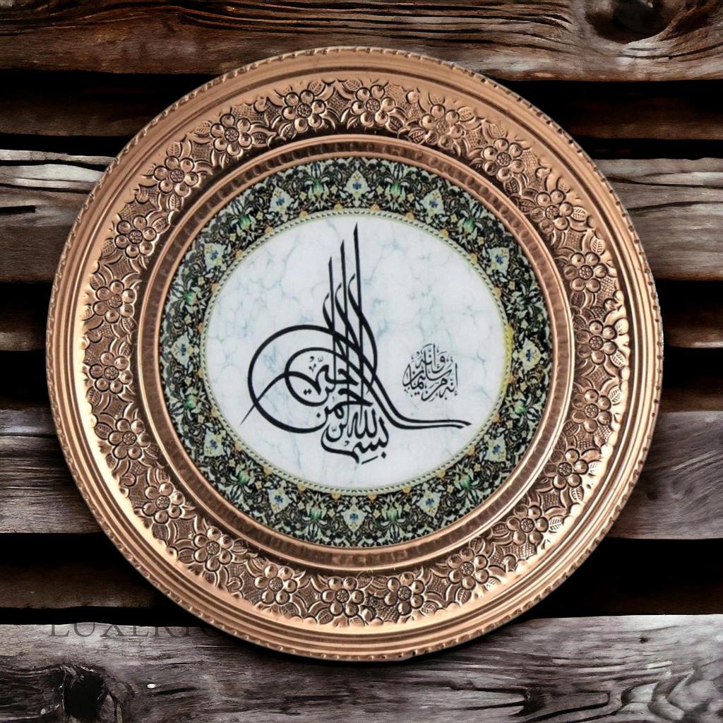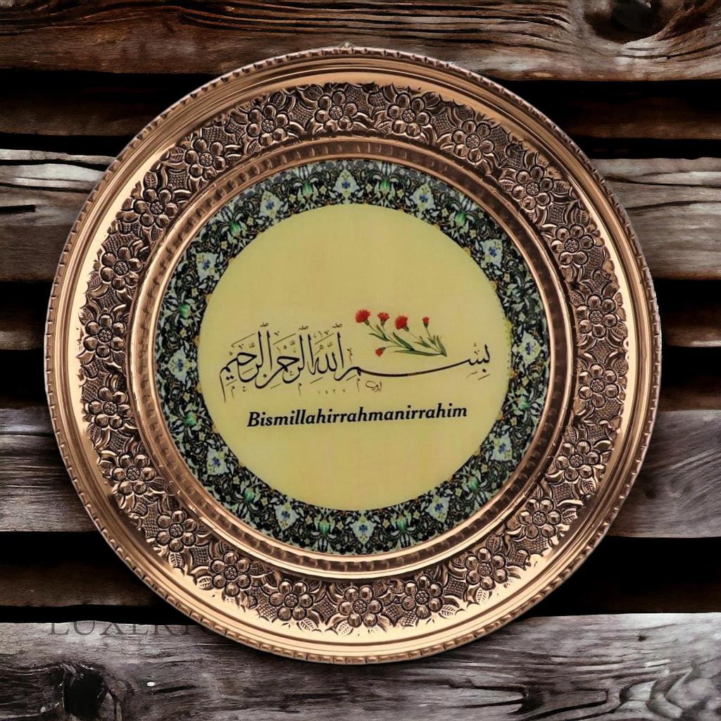Медный настенный поднос с вышивкой Османская тугра 15 см