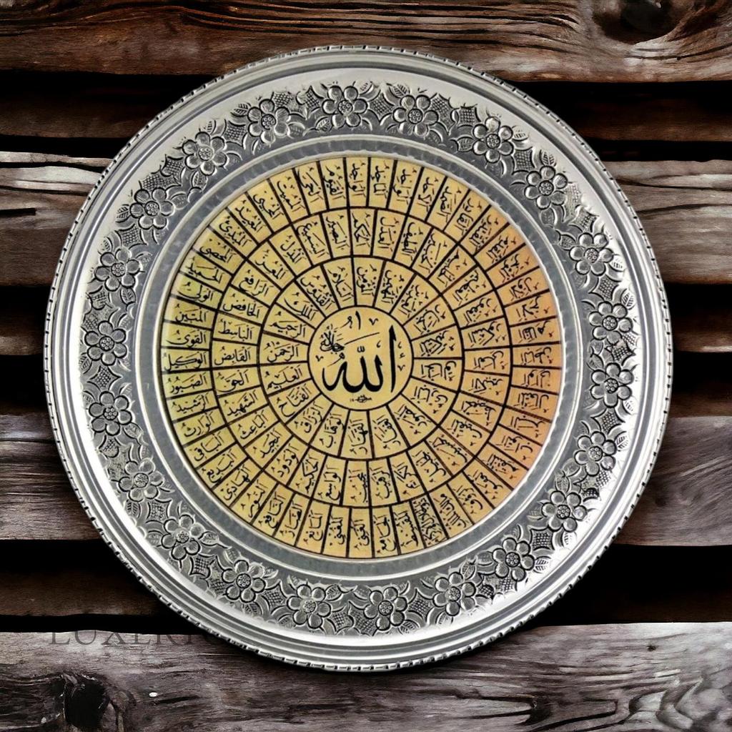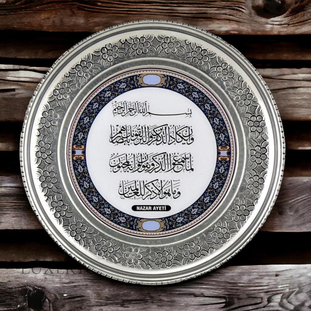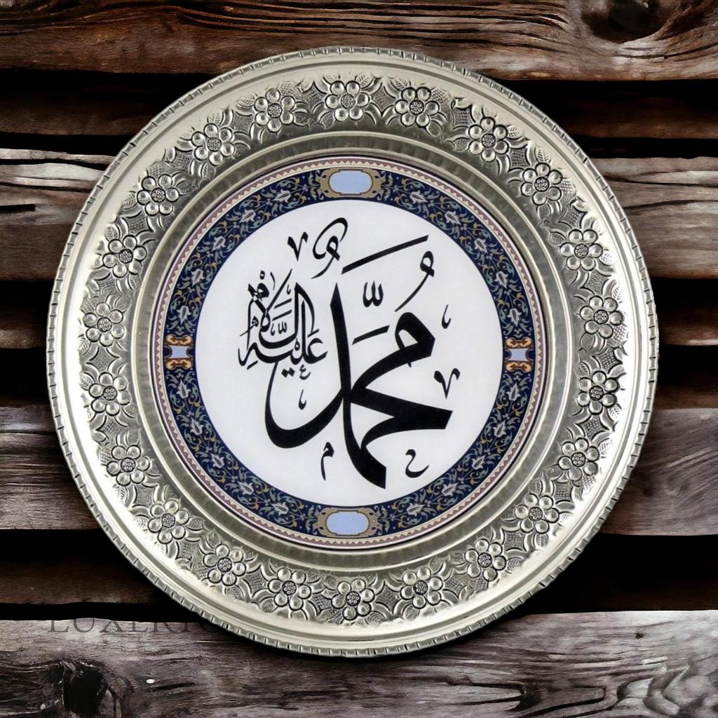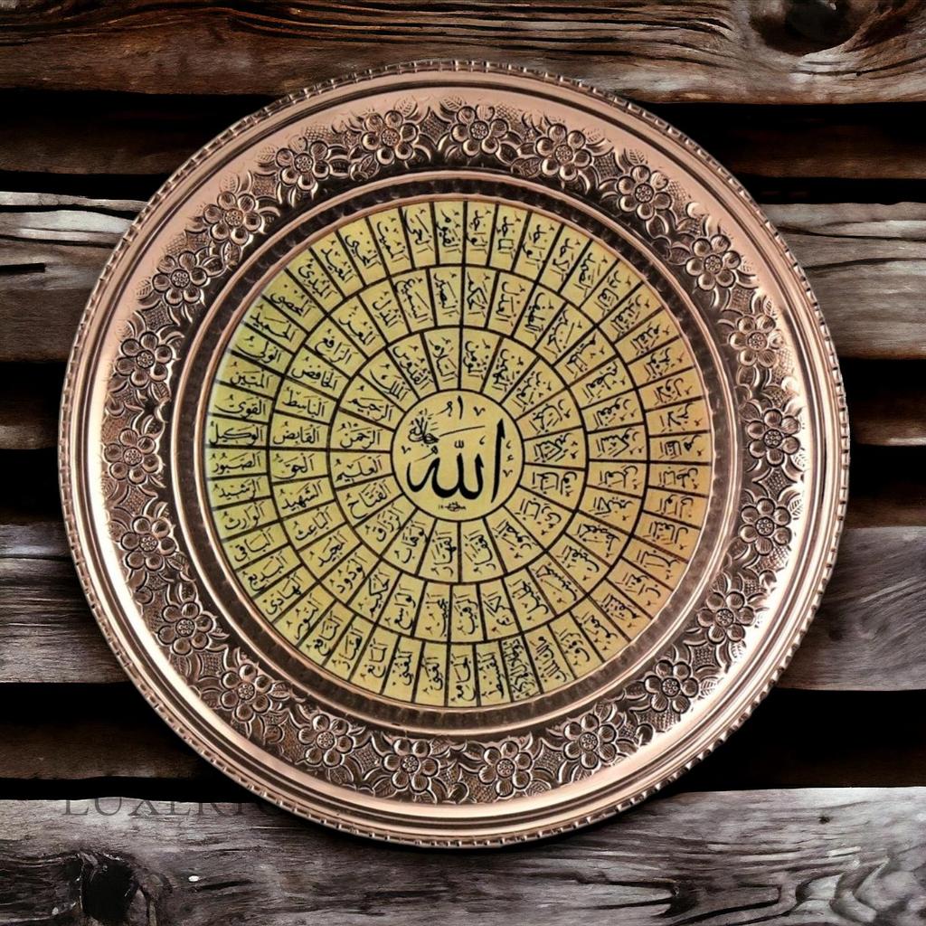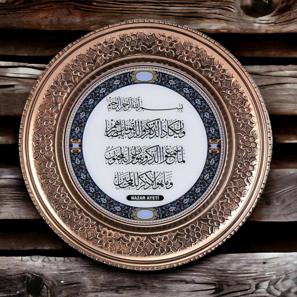 Медный настенный поднос с вышивкой Османская тугра 15 см
