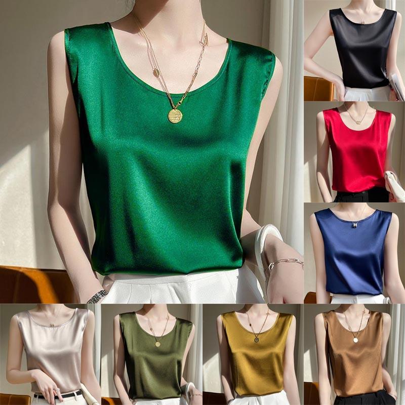 Высококачественный женский повседневный шелковый атласный свободный жилет без рукавов, летний элегантный женский жилет — купить товар онлайн с бесплатной доставкой по всему миру!