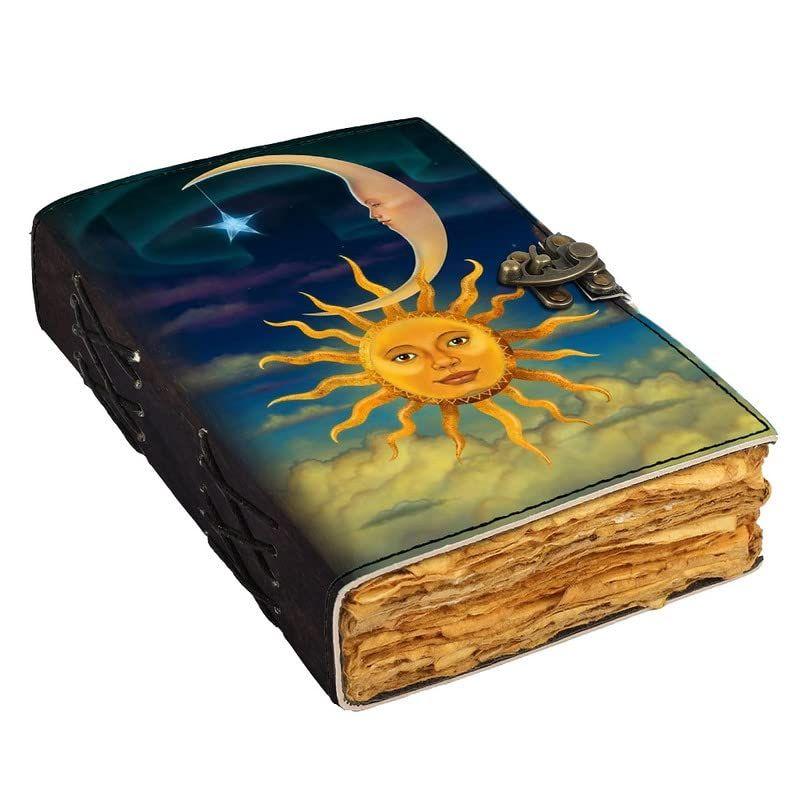 Если вы ищете ремесленный журнал с оттенком прошлого, который станет отличным спутником в путешествии и идеальным подарком, тогда ваш поиск окончен, поскольку Navya Export продает самые удивительные дневники в кожаной обложке в винтажном стиле, которые поставляются со старинными старыми страницами и качественный замок-пряжка. Этот размер идеально подходит для сумочки, рюкзака или портфеля, что делает его идеальным вариантом для путешественников, студентов или профессионалов, которые хотят делать заметки или идеи в течение дня. Дневник в кожаном переплете ручной работы имеет толстую, нелинейную форму. декель край 200 страниц и набивной кожаный переплет с замком. Легко писать и рисовать, используйте любые перьевые ручки или разные цвета, не беспокоясь о проступлении. это идеальный вдохновляющий день рождения, День отца, День матери, годовщина свадьбы, Рождество, выпускной, подарок на помолвку для братьев и сестер и для тех, кто ценит старинные старые бумаги.
