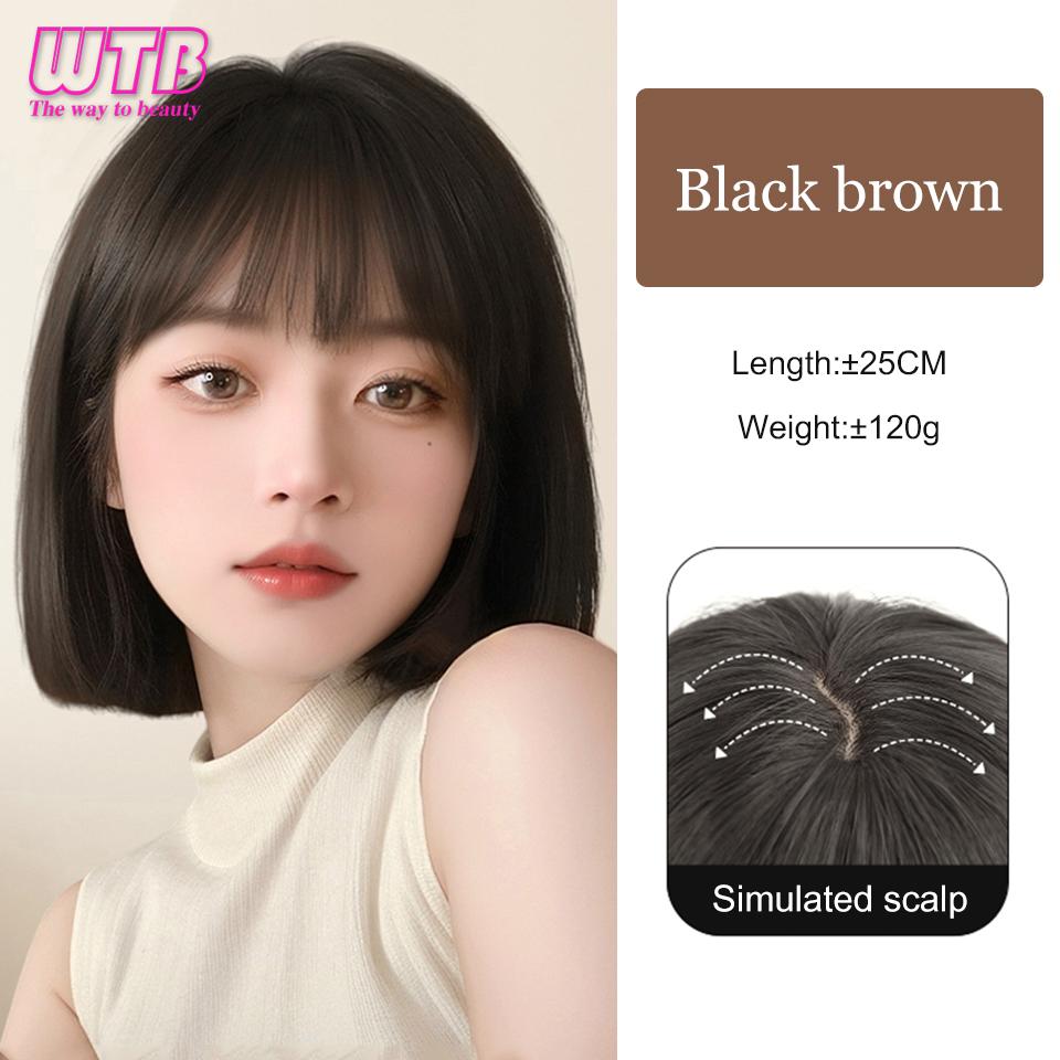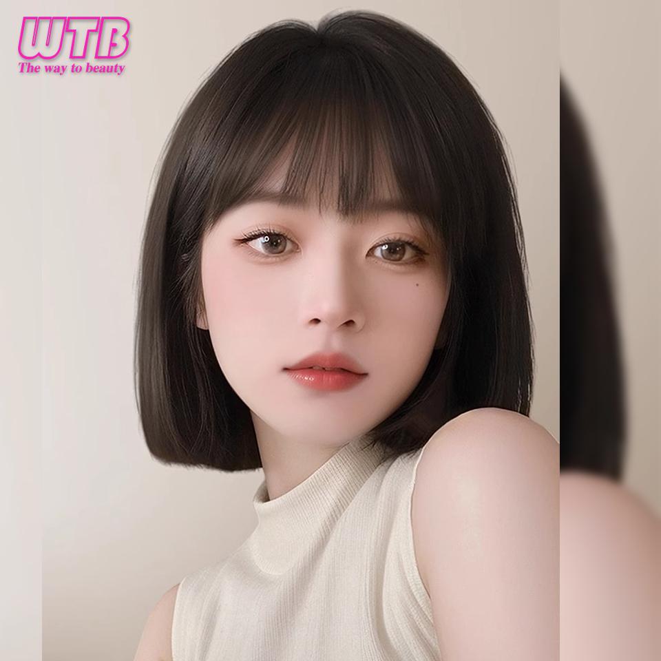 WTB синтетический короткий прямой парик для женщин, короткие парики с челкой, термостойкие черные/каштановые волосы, парик для косплея