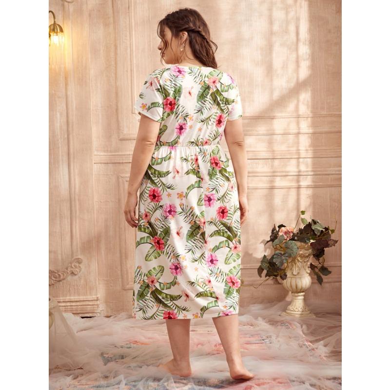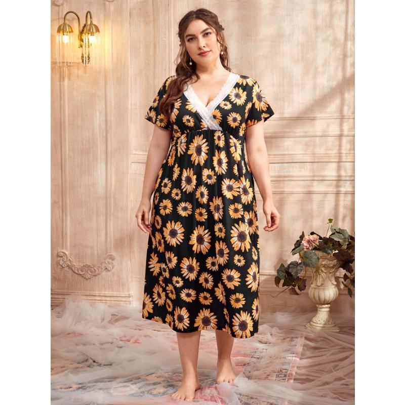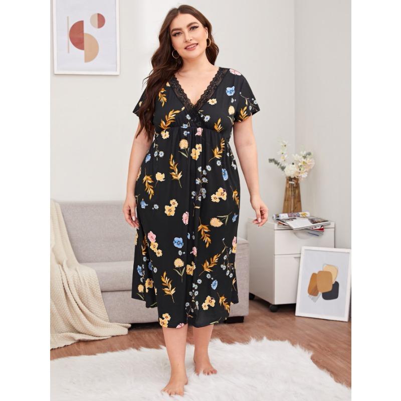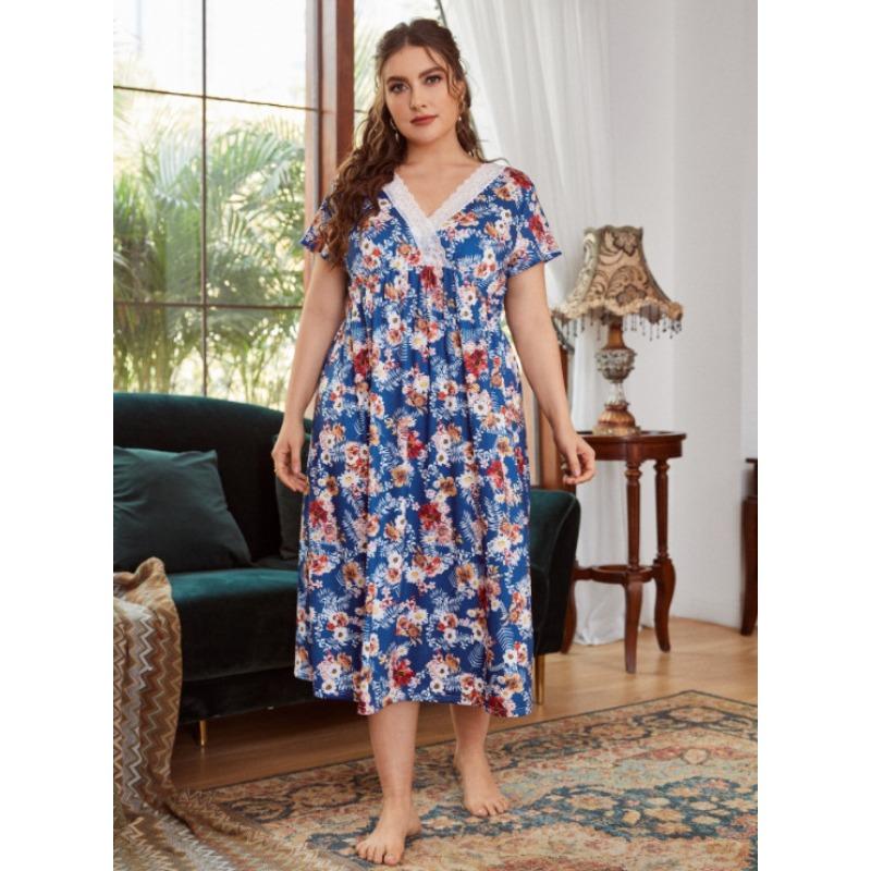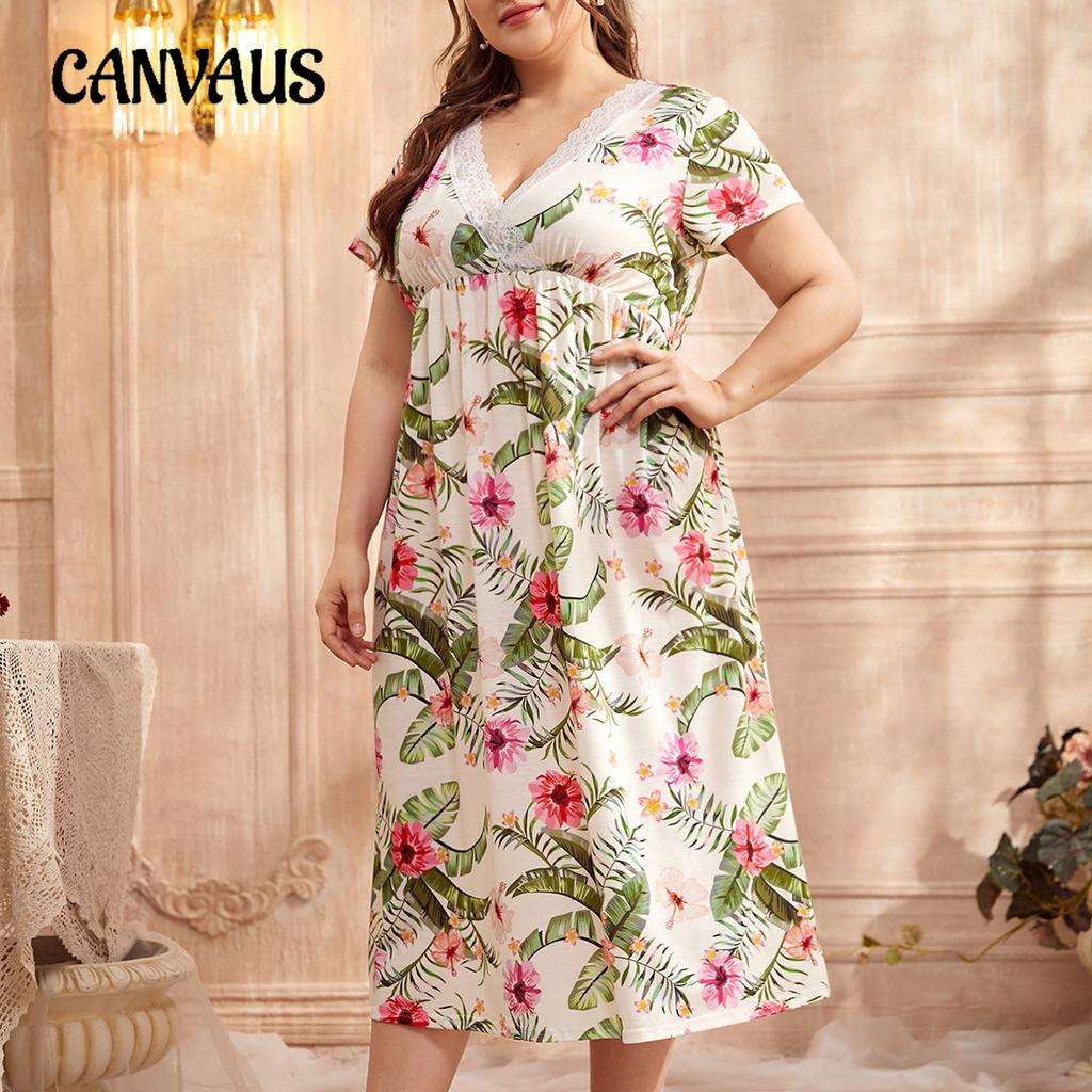 Весенне-летняя ночная рубашка большого размера, женская домашняя одежда, пижамы, кружевные ночные рубашки с v-образным вырезом и принтом, короткие рукава