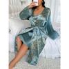 Халат большого размера с женственным принтом из ткани под шелк, Сатиновый шелковый домашний халат-платье