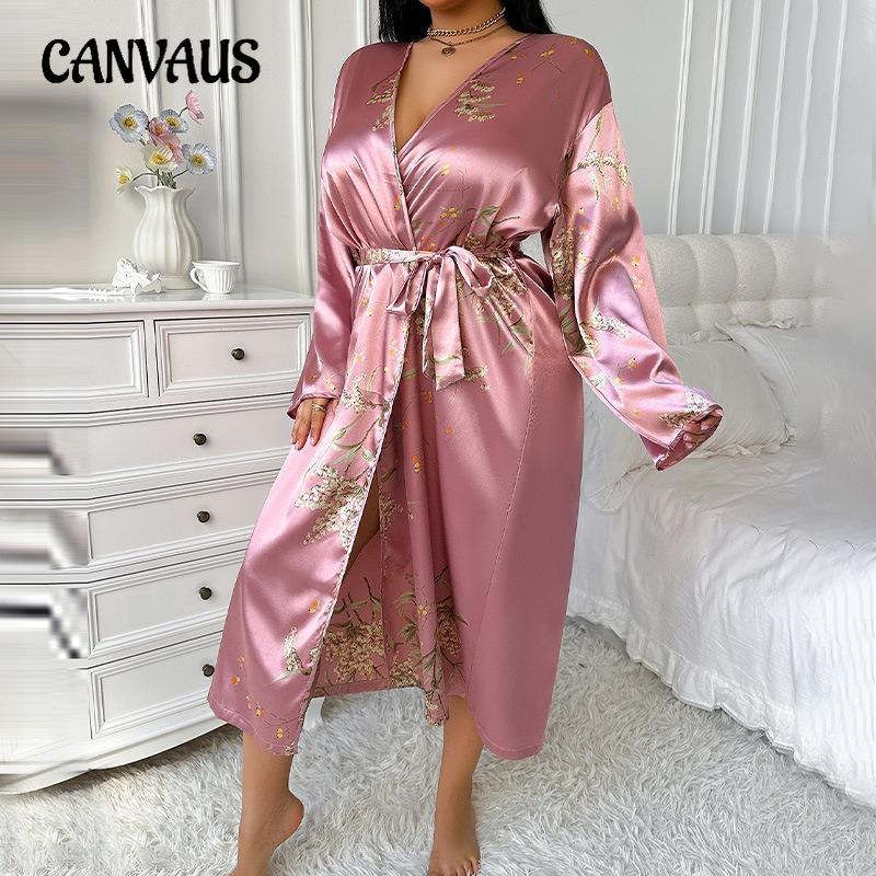 Халат большого размера с женственным принтом из ткани под шелк, Сатиновый шелковый домашний халат-платье — купить товар онлайн с бесплатной доставкой по всему миру!