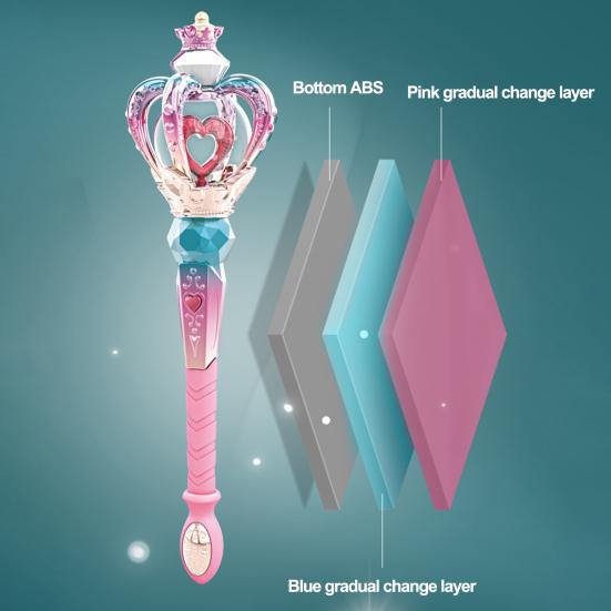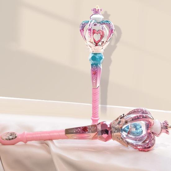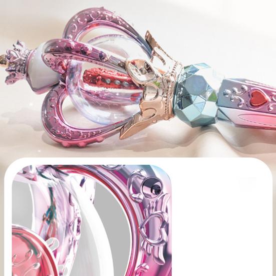 Форма короны, встроенные вращающиеся разноцветные фонари в форме сердца, темный дизайн в стиле ретро и изысканное мастерство делают эту палочку модным украшением, которое девушка будет держать на ладони.. Включите кнопку переключателя и наблюдайте, как скипетр принцессы оживает под музыку и разноцветные огни.