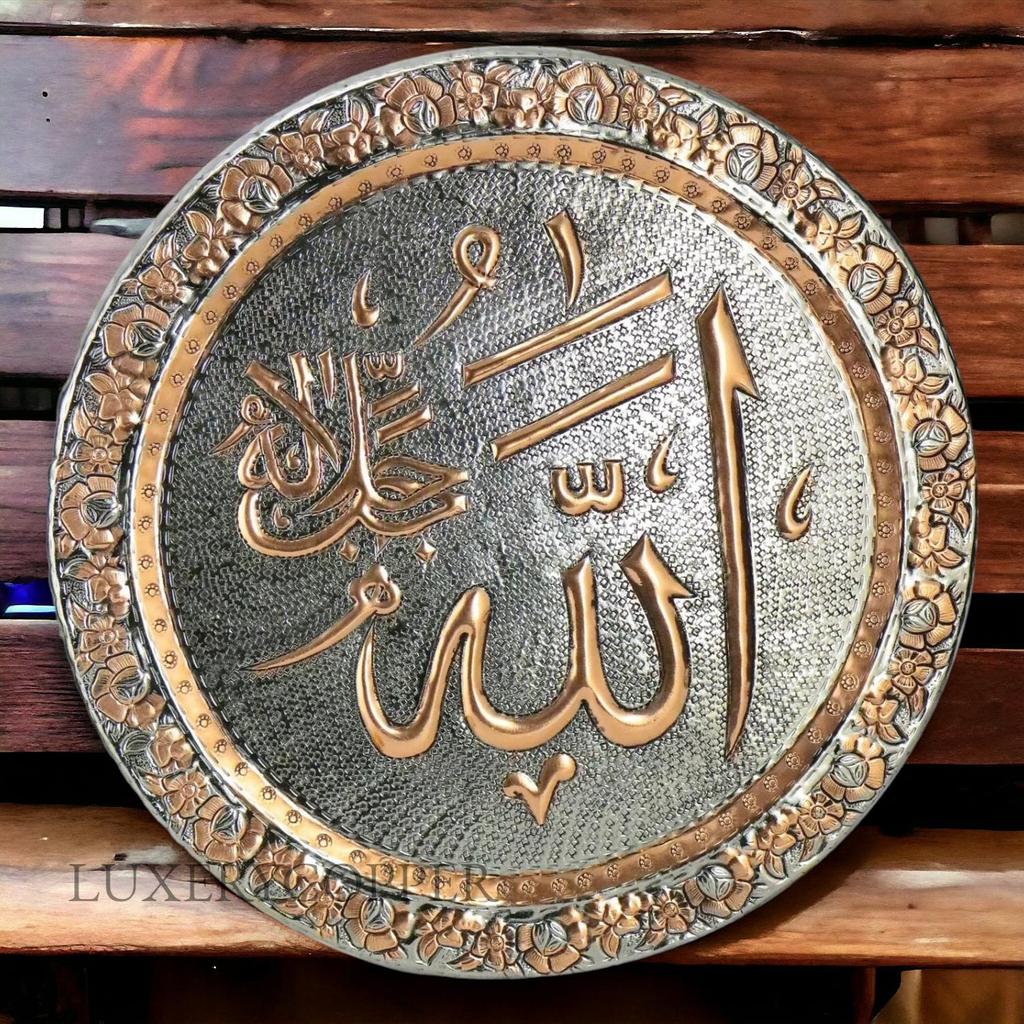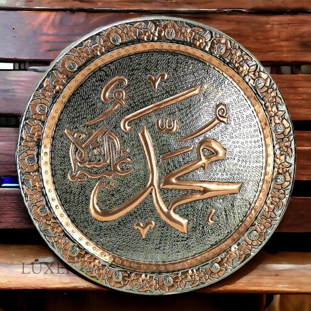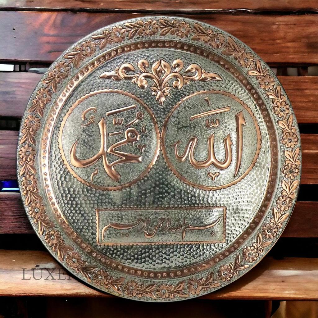 Медный настенный поднос с вышивкой "Аллах Мухаммад" 40 см