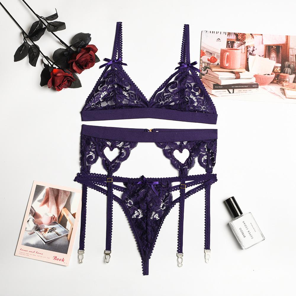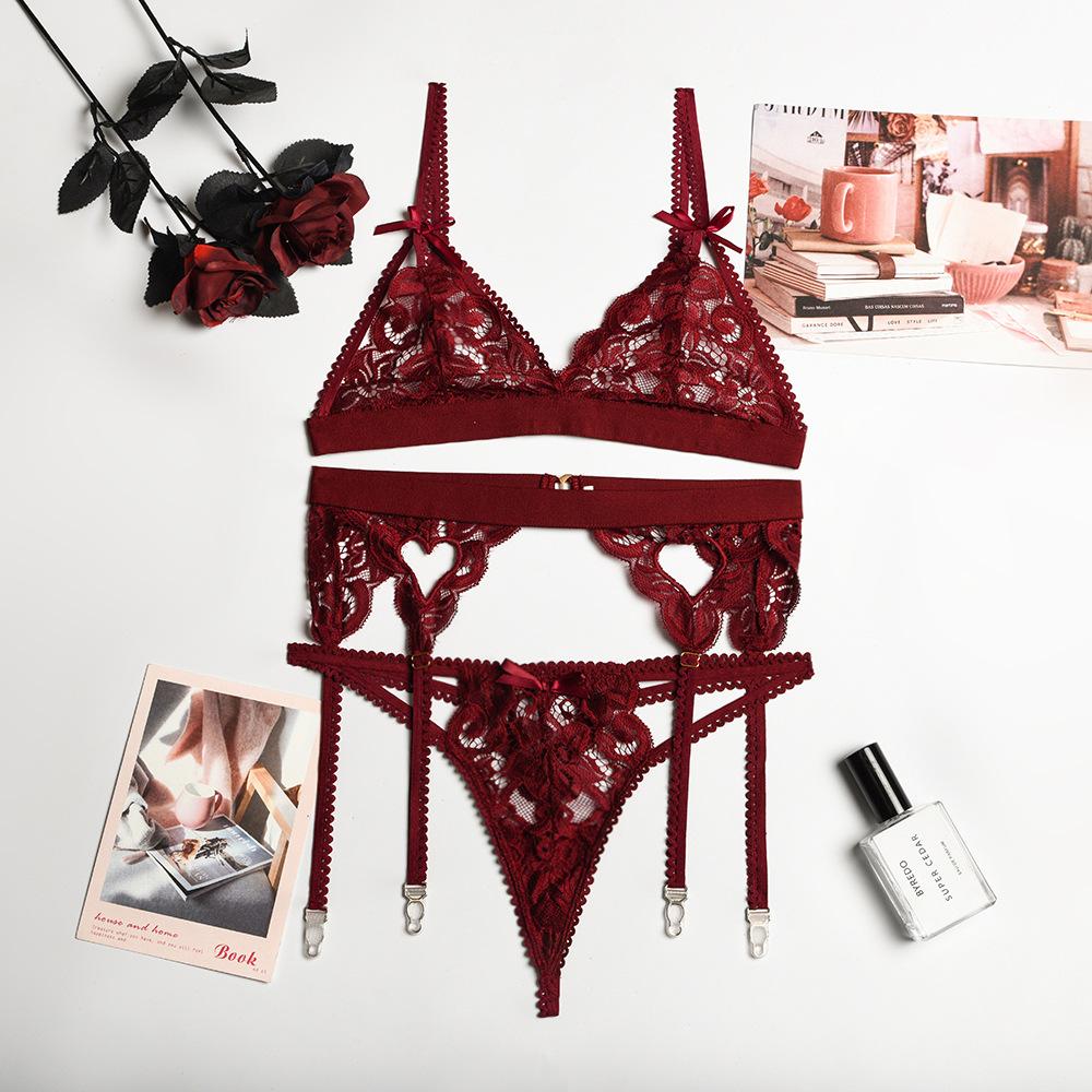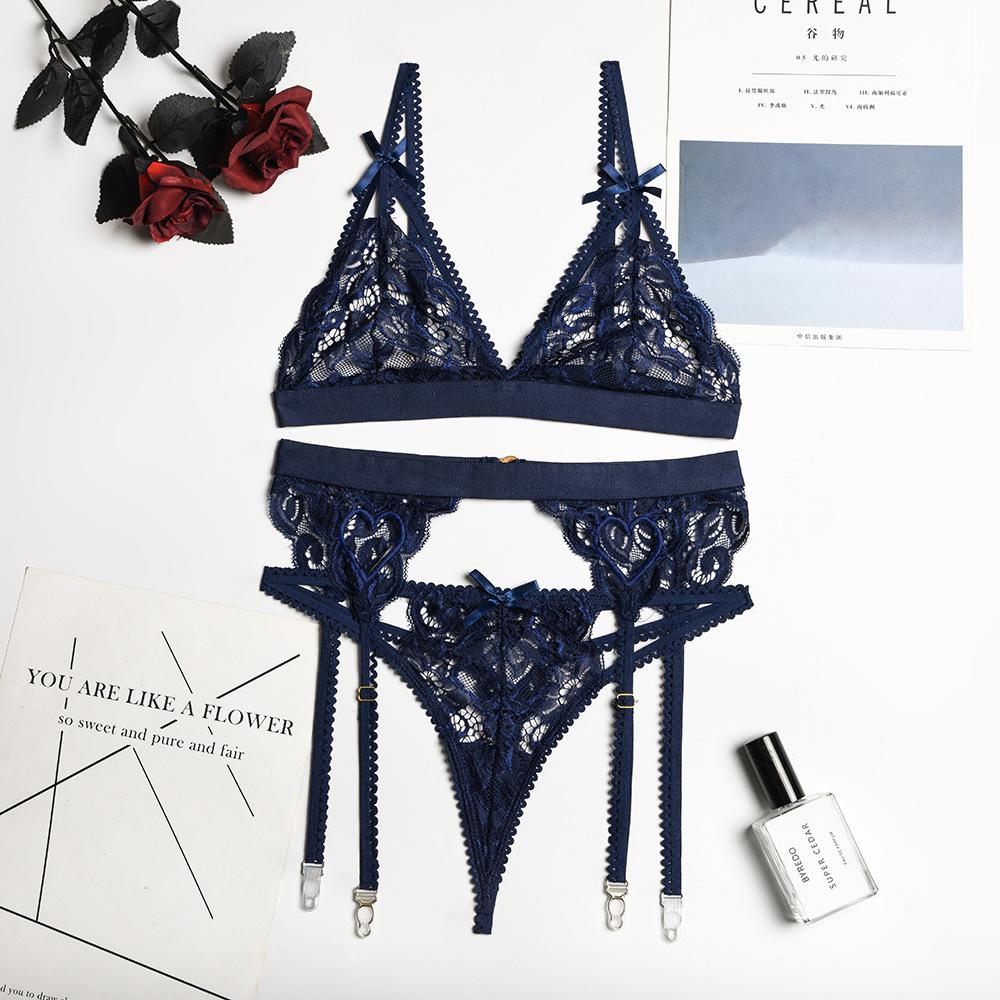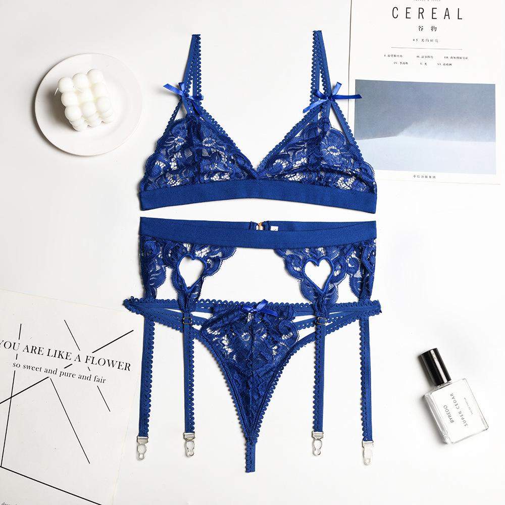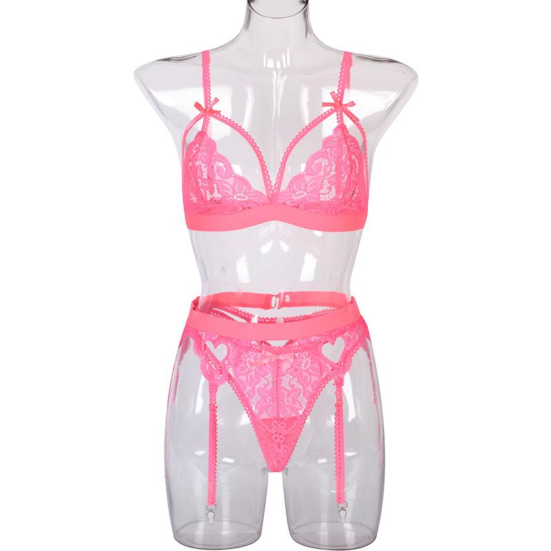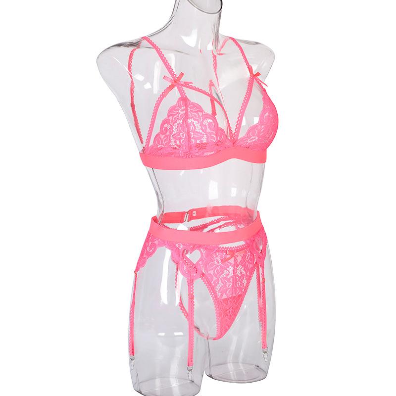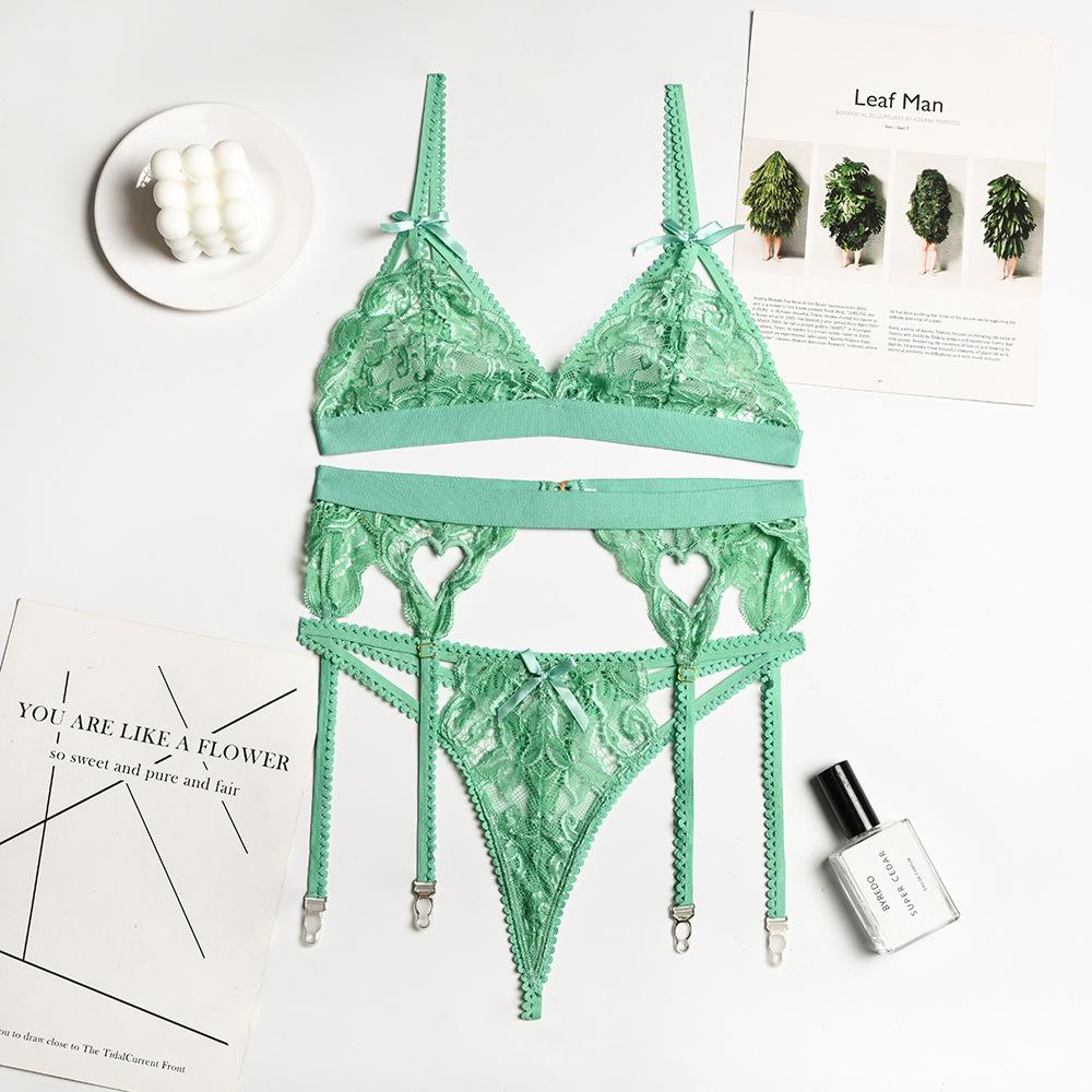 Эротическое нижнее белье, женское разноцветное сексуальное кружевное нижнее белье на подтяжках с бантом и узлом, комплект из трех предметов