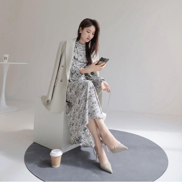 Модное платье макси с рукавами-пузырьками и тушью для женщин весной