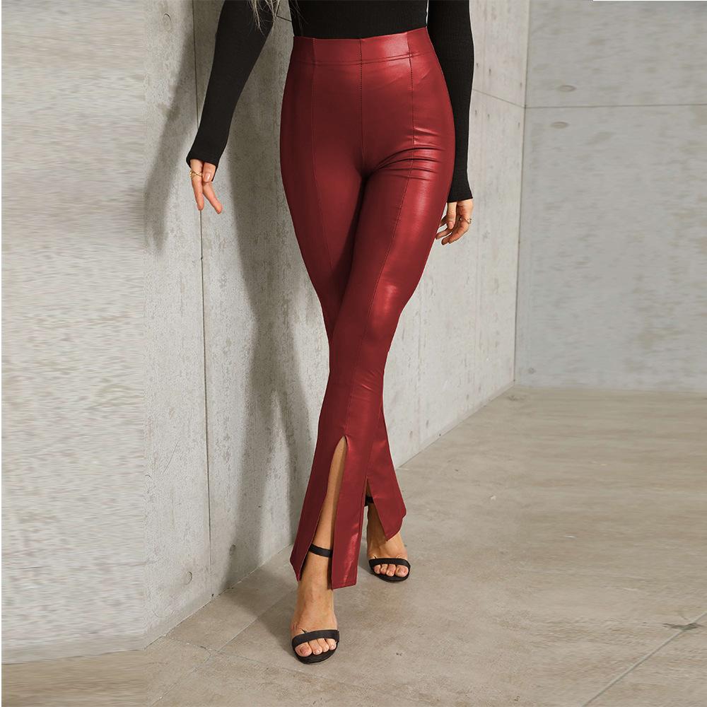 Леггинсы из искусственной кожи, женские модные брюки с разрезом, красочные сексуальные тонкие колготки с высокой талией, брюки больших размеров
