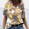 Женская футболка с рисунком котенка, одежда в стиле Харадзюку, летний пуловер с v-образным вырезом для девочек, хлопковые футболки с короткими рукавами, женская повседневная уличная одежда