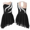 Детская танцевальная одежда с блестками и стразами для девочек, платье без рукавов с открытой спиной и косым подолом, платье для фигурного катания на коньках